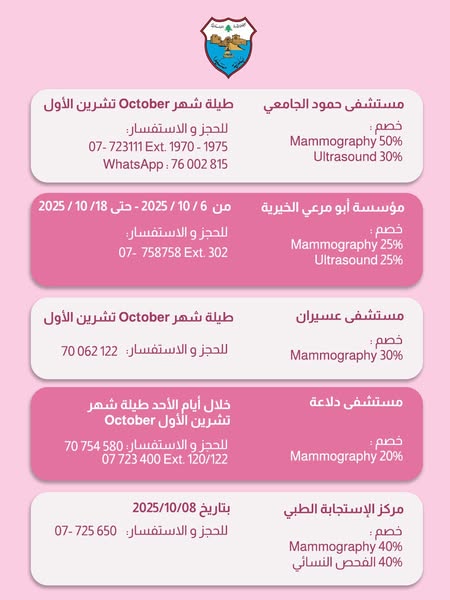 مع حلول شهر أكتوبر ، شهر التوعية بسرطان الثدي، تنظّم بلدية صيدا حملة طبيّة بالتعاون مع مراكز طبية عدة في المدينة، تتضمن حسومات خاصة على الفحوصات الخاصة بهذا الشهر. تجدون كامل التفاصيل في المنشور المرفق.