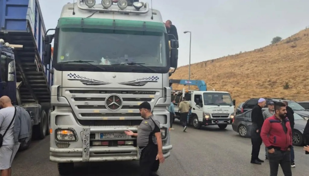 جريدة صيدونيانيوز.نت / أصحاب الشاحنات يقطعون طريق ضهر البيدر الدولية... واحتجاز مواطنين في سياراتهم!