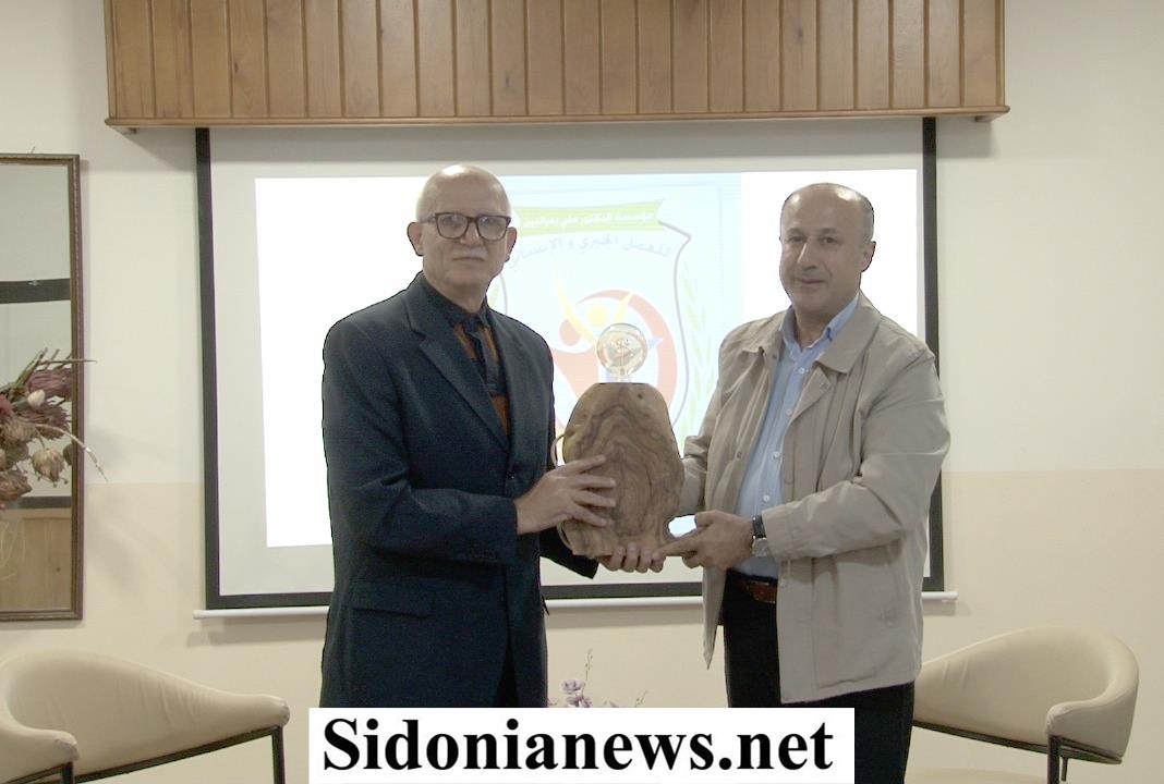 وفي ختام اللقاء كرمت إدارة ثانوية السفير الدكتور بدر الدين حيث قدم له مديرها الدكتور ناصر الدين هدية تذكارية .