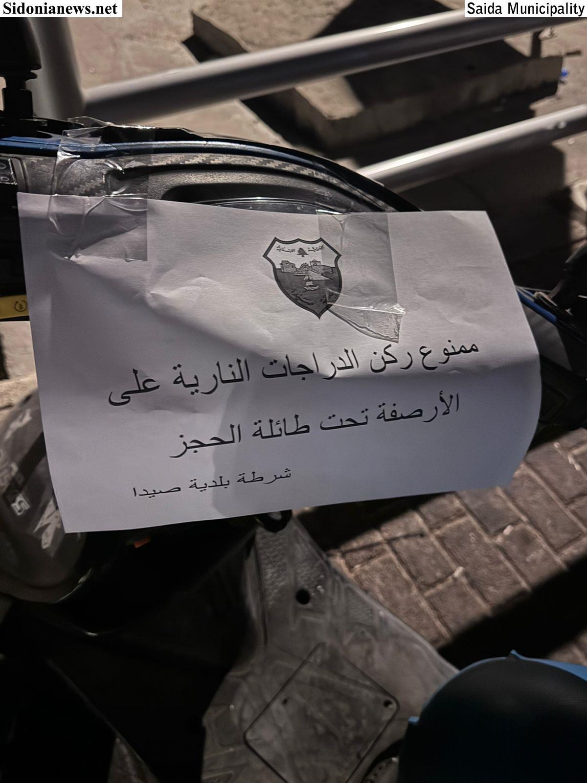 في إطار الحفاظ على النظام العام وسلامة المشاة وتنظيم حركة السير، قامت شرطة بلدية صيدا بحملة ميدانية تهدف إلى منع الدراجات النارية من السير أو الركن على الأرصفة والأماكن المخصصة للمشاة.