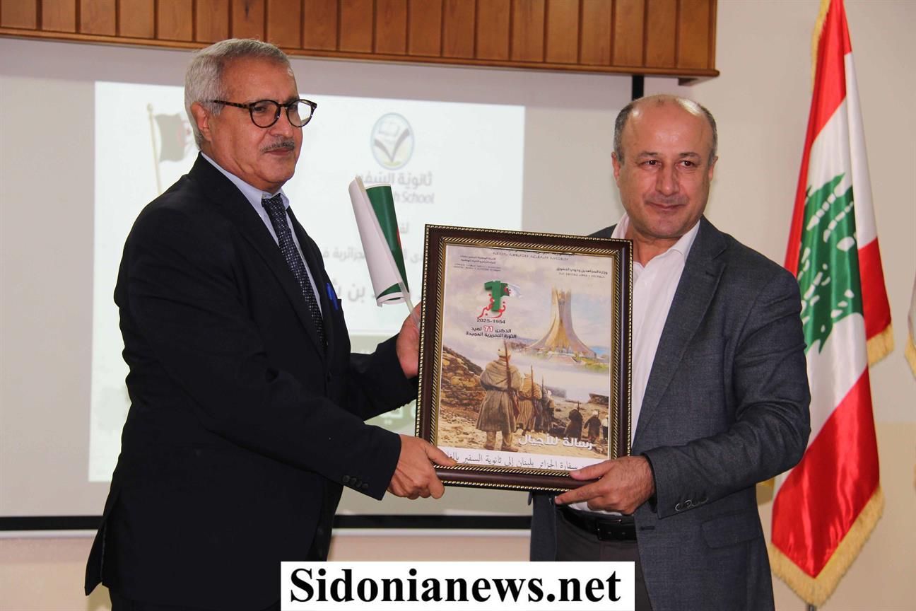 أخبار مدينة صيدا / بالصور : ثانوية السفير استضافت القائم بأعمال سفارة الجزائر محمد بن شيخ في لقاء بعنوان " إرادة الحياة " تحيةً لذكرى ثورتها المجيدة