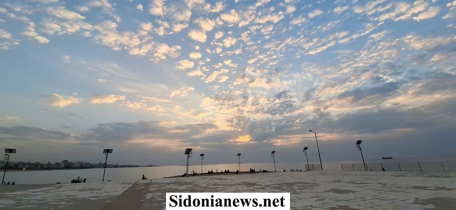 وغروب الشمس مساء الإثنين 25-11-2025 كما بدا من مدينة الرئيس الشهيد رفيق الحريري في صيدا حيث تجمعت الغيوم إيذانا بقرب حلول العاصفة اليوم الثلاثاء25-11-2025