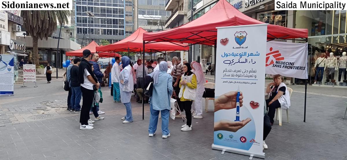 بمناسبة شهر التوعية حول داء السكري، نظمّت لجنة الصحة في بلدية صيدا برئاسة د. تيسير بلال الزعتري، بالتعاون والتنسيق مع جمعية تجار صيدا وضواحيها ومشاركة منظمة أطباء بلا حدود، مؤسسة عامل و جامعة الجنان - كلية التمريض، حملة طبية توعوية ليوم واحد حول داء السكري تحت شعار "تعلّم حتى تعرف تتحكّم و تعيشا صح بلا سكر" وذلك في ساحة Eldorado - سوق صيدا التجاري.