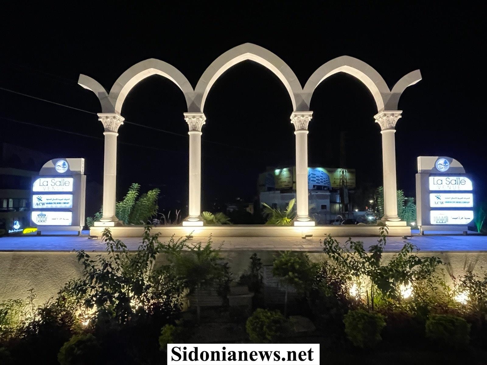 الدّوار تميّز بنصب تذكاري تداخلت فيه الأقواس المعماريّة الكلاسيكيّة المضيئة، التي ترتكز على أعمدة اثريّة مزخرفة بالتيجان. إذ تبرز الإضاءة المثبتة أدناه تفاصيل هندسيّة رائعة، في حين تتوسط المساحة الخضراء شجرة زيتون معمّرة، ترمز إلى السلام والثبات.