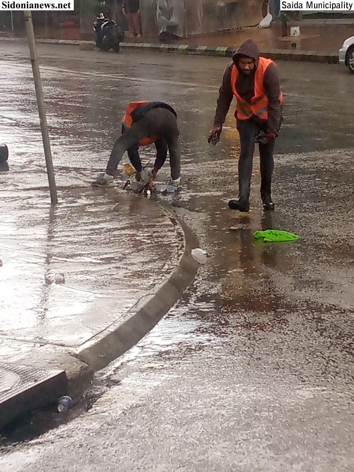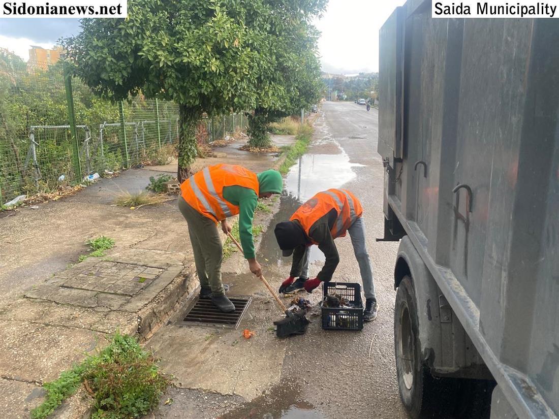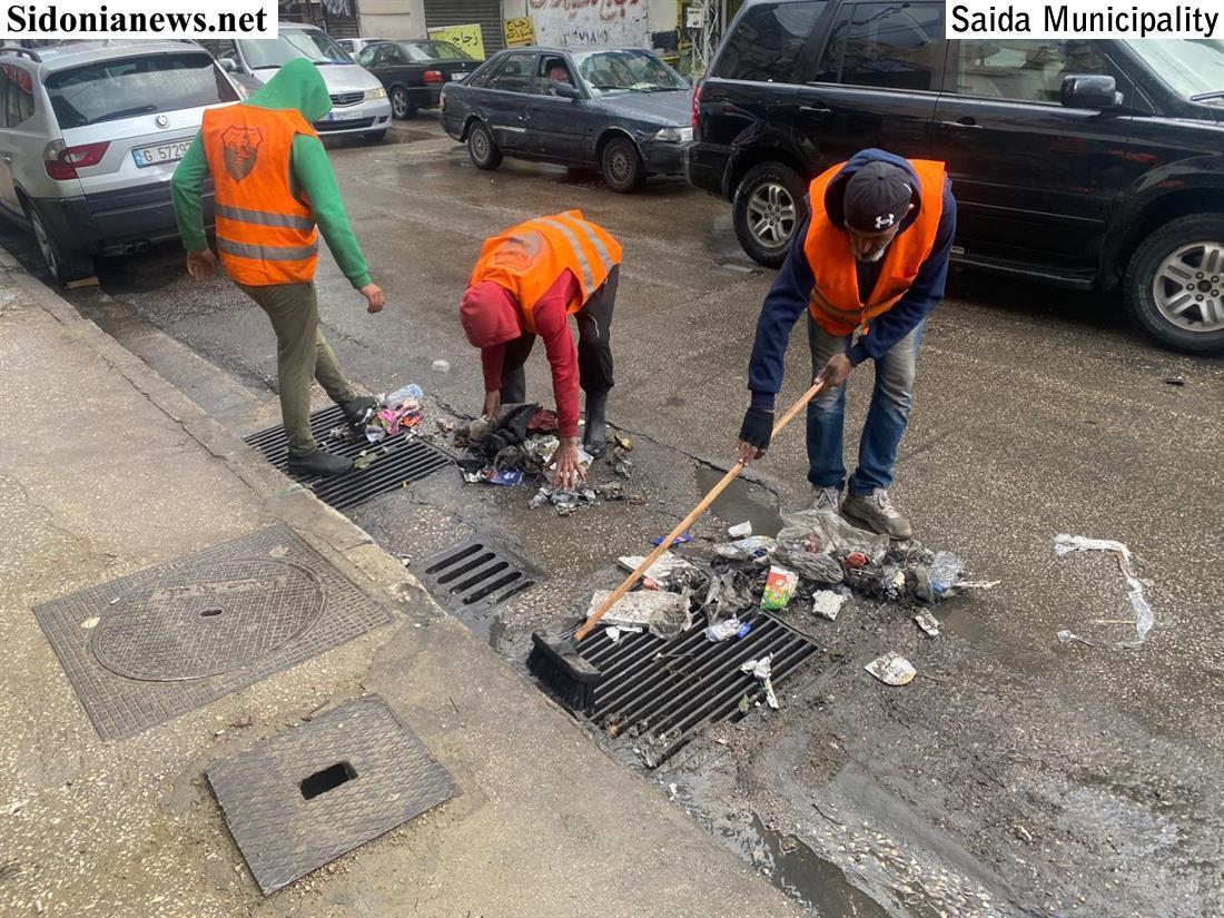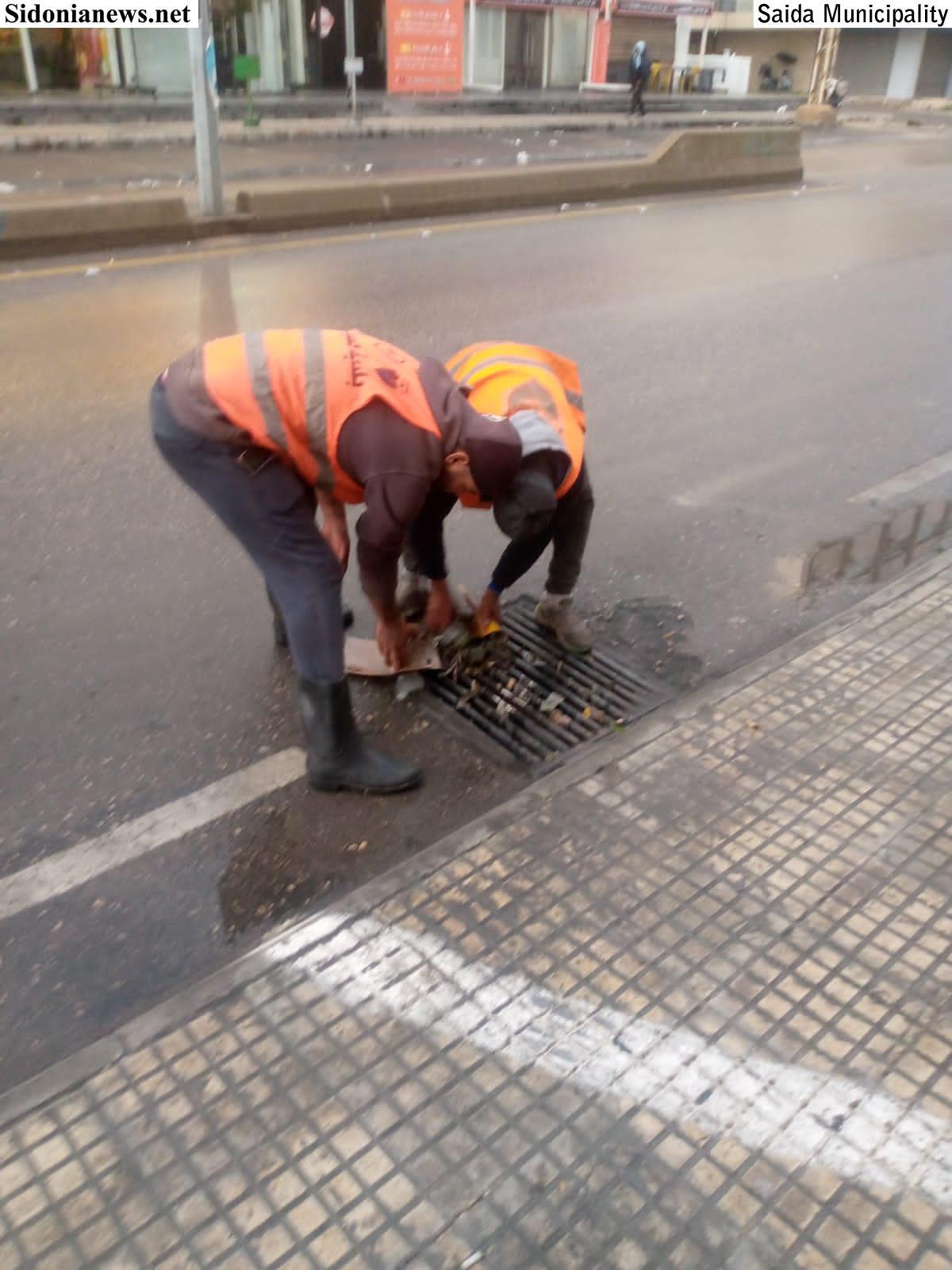 إستنفرت فرق طوارىء وورش بلدية صيدا لمواجهة تداعيات الأمطار الغزيرة جراء المنخفض الجوي، وقامت بالكشف على أقنية تصريف المياه والمجاري في مختلف شوارع المدينة ، ولا سيما تلك التي سجلت فيها تجمعات لمياه الأمطار ، وقامت بتعزيلها وفتح الأقنية التي إنسدت أغطيتها جراء الأتربة وأغصان الأشجار وأكياس النايلون ومخلفات جرفتها مياه الأمطار.