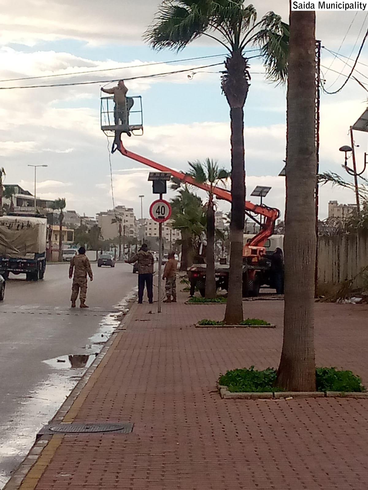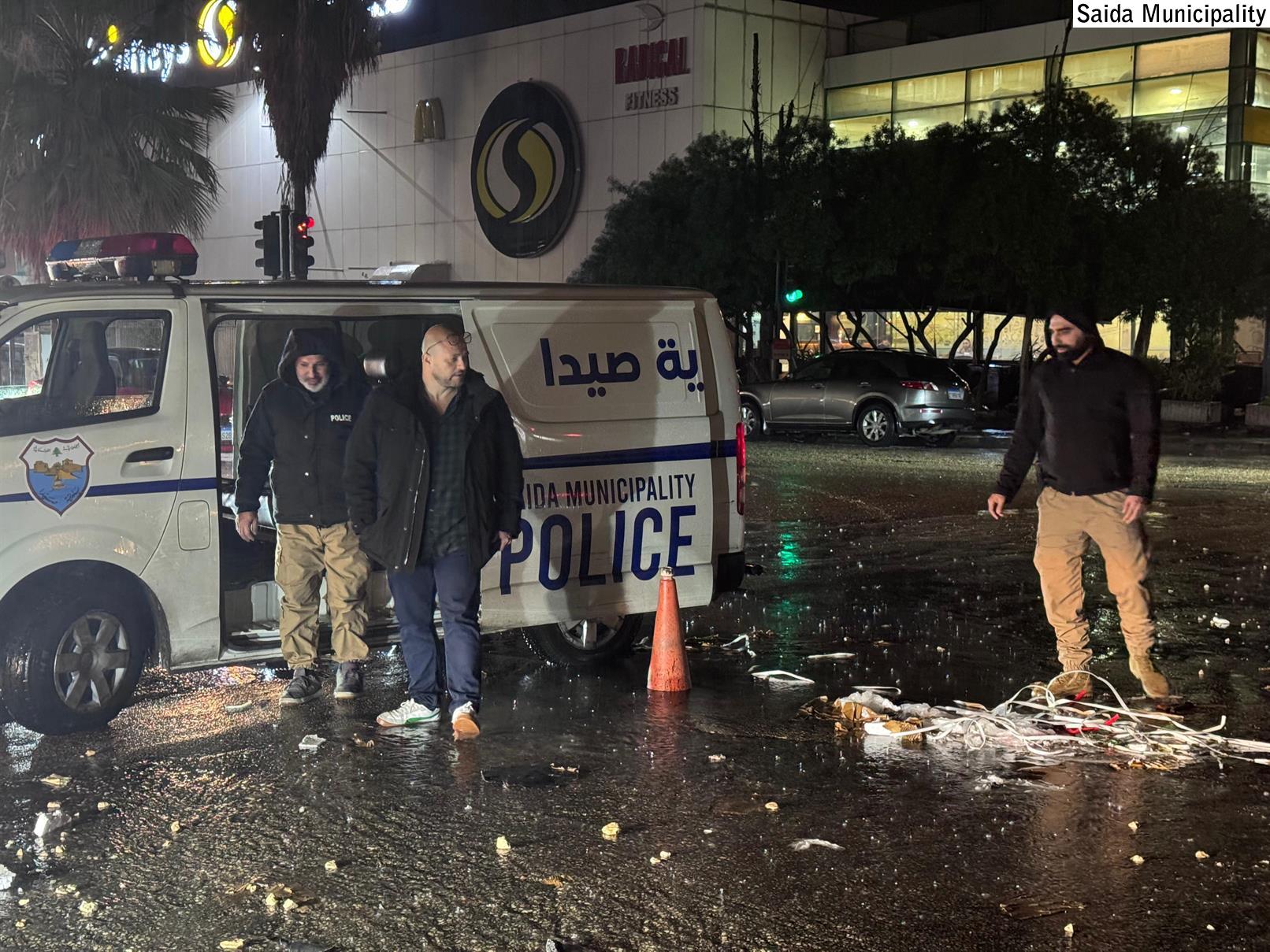 بالصور: بلدية صيدا : دوريات شرطة البلدية وفرق الطوارىء مستنفرة لخدمة المواطنين في مواجهة تداعيات العاصفة