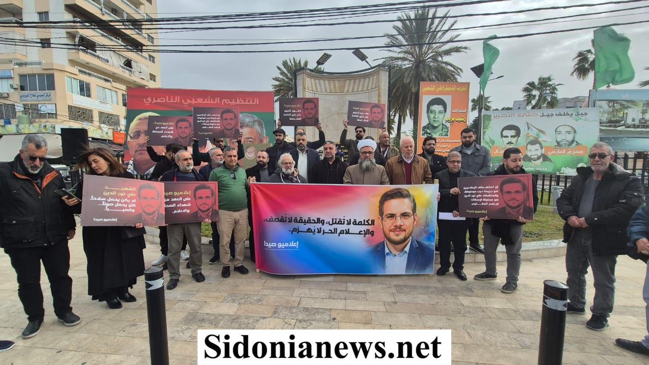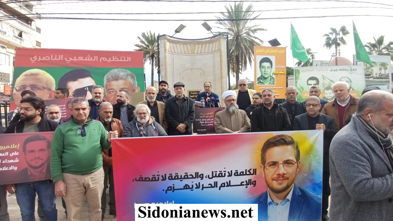 بالصور: وقفة تضامنية في ساحة شهداء صيدا تنديدًا بإستمرار باستهداف العدو الإسرائيلي للصحافيين وإغتيال الشهيد علي نور الدين وردود فعل متضامنة من فاعليات وشخصيات