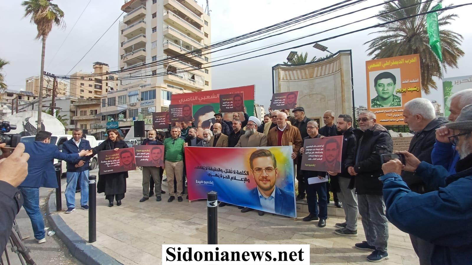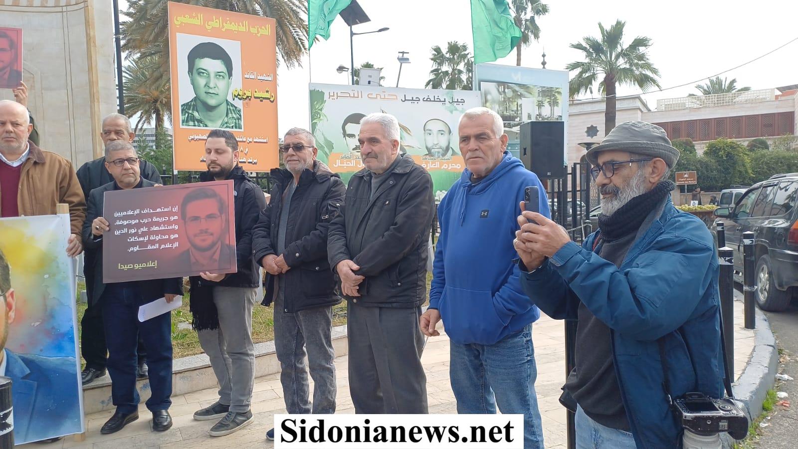 نفذت قبل ظهر اليوم وقفة تضامنية في ساحة شهداء صيدا بإسم الإعلاميين في صيدا ومنطقتها وذلك للتعبير عن تنديدهم لمواصلة العدو الإسرائيلي إستهداف الصحافيين والعاملين في الجسم الإعلامي وآخرهم الإعلامي الشهيد علي نور الدين.