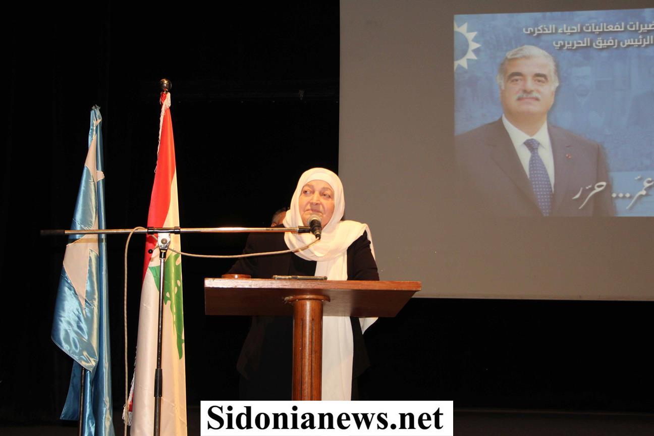 وأضافت: رفيق الحريري انطلق من هذه المدينة، كان يحلم وحقق كثيراً من أحلامه ، لكن لم ينس صيدا، ولا صيدا نسيته. هذه مدينتنا التي نعتز بها، وأنتم تعتزون بها ، ونرى كثيرين من الأعمار الذين لم يكن لهم نصيب أن يعرفوا رفيق الحريري لكن سمعوا به، وهم يحبون رفيق الحريري .