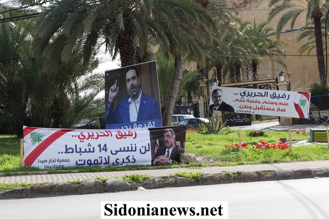 ورفعت جمعية تجار صيدا وضواحيها لافتات بالمناسبة حيت فيها ذكرى الرئيس الشهيد وجاء فيها: "رفيق الحريري .. لن ننسى 14 شباط .. ذكرى لا تموت ، ستبقى في قلوب اللبنانيين.. رمز الإعمار والأمل، معك بدأ الحلم .. وبذكراك يستمر ".