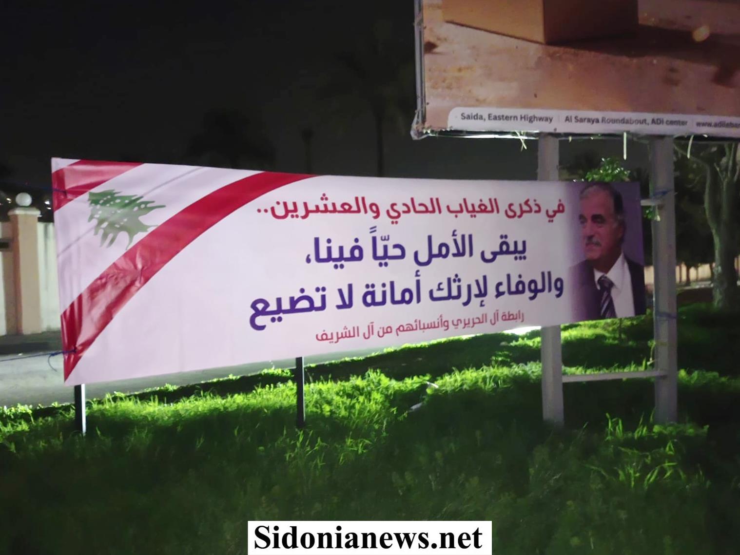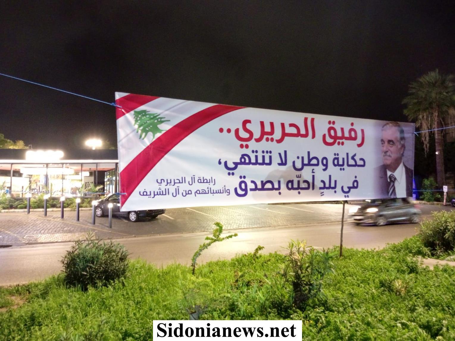 عشية الذكرى الحادية والعشرين لإستشهاده ، تعبر عاصمة الجنوب صيدا كعادتها في هذه المناسبة عن حبها ووفائها لإبنها الرئيس الشهيد رفيق الحريري برفع لوحات ولافتات تحمل صور الرئيس الشهيد وعبارات تحيي مواقفه الوطنية والإنسانية وتستحضر إنجازاته في مختلف المجالات، وما عاناه لبنان منذ استشهاده وتؤكد على تجديد العهد ومتابعة مسيرة ونهج الرئيس الشهيد مع نجله الرئيس سعد الحريري .