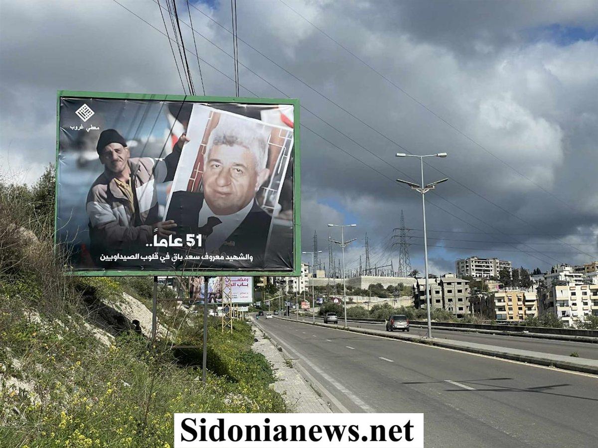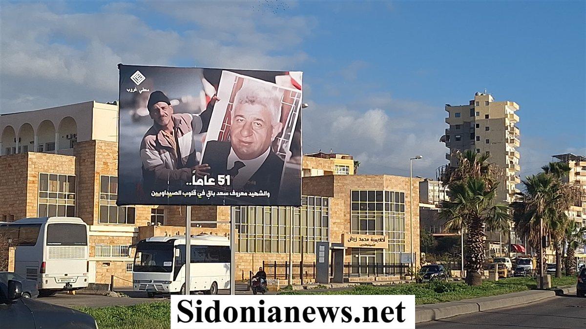 بمناسبة الذكرى الـ 51 لاستشهاد المناضل الوطني الشهيد معروف سعد، قام مدير عام شركة معطي غروب عضو مجلس بلدية صيدا السيد عامر عفيف معطي برفع لوحات في عدد من طرقات وأحياء مدينة صيدا وضواحيها، حملت عبارات الوفاء لذكراه واستذكاراً لمسيرته الوطنية والنضالية.