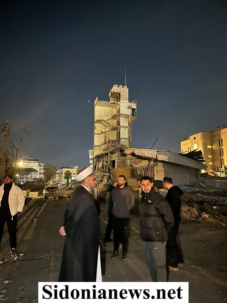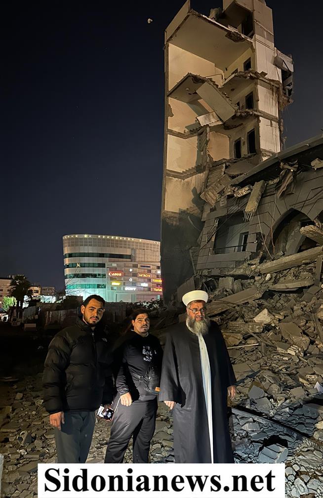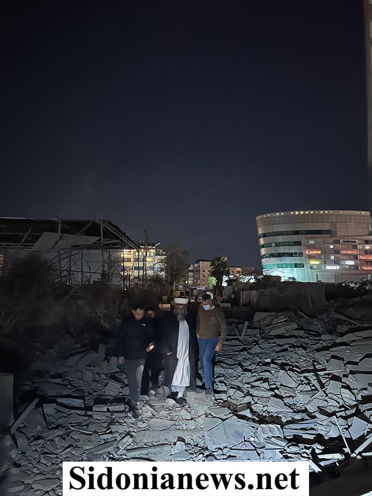 تفقد إمام وخطيب مسجد الغفران في صيدا الشيخ حسام العيلاني مكان الغارة الصهيونية التي استهدفت مقر الجماعة الإسلامية في صيدا