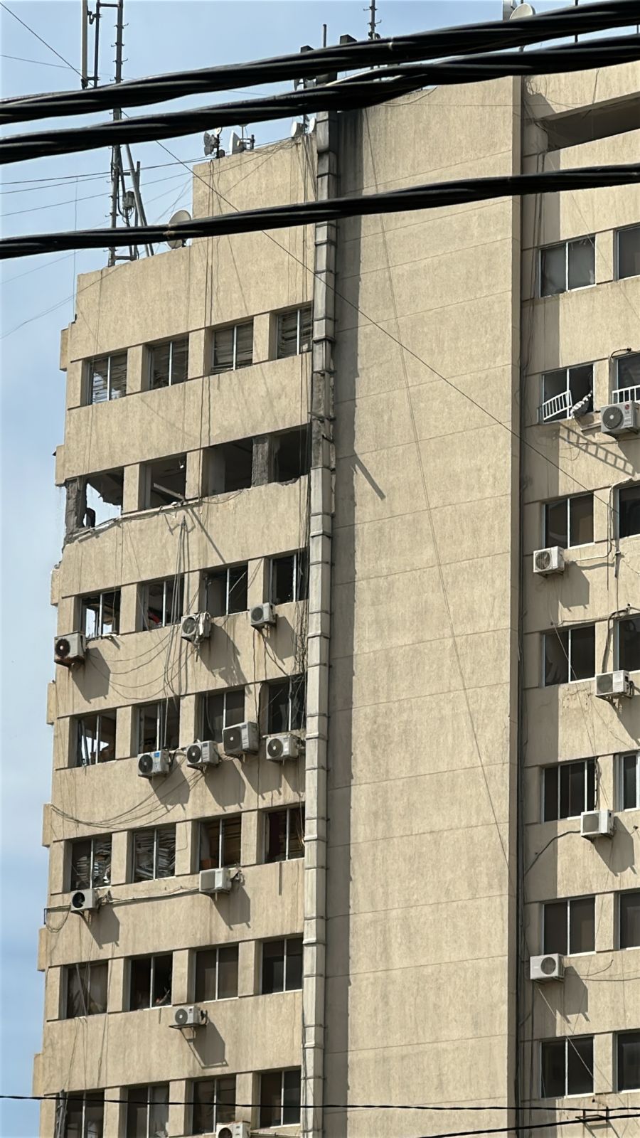 والمبنى إداري ومدني ويضم عيادات ومكاتب إدارية ومكاتب محامين وأطباء وخبراء وغير ذلك فيما المنطقة هي سكنية ومدنية بامتياز. كما أن المبنى على بعد أمتار من المدرسة الكويتية في صيدا والتي تحولت إلى مركز إيواء للعائلات النازحة ما أثار الرعب في نفوس النازحين.