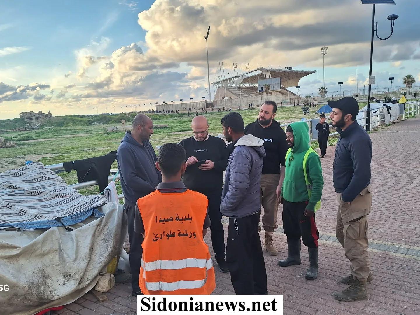 وعقب الاجتماع، قام الفريق البلدي بجولة ميدانية إلى ملعب صيدا البلدي (ملعب الرئيس الشهيد رفيق الحريري)، حيث تم اعتماده رسمياً كمركز رئيسي ومحطة لوجستية لتجميع وتوزيع المساعدات.