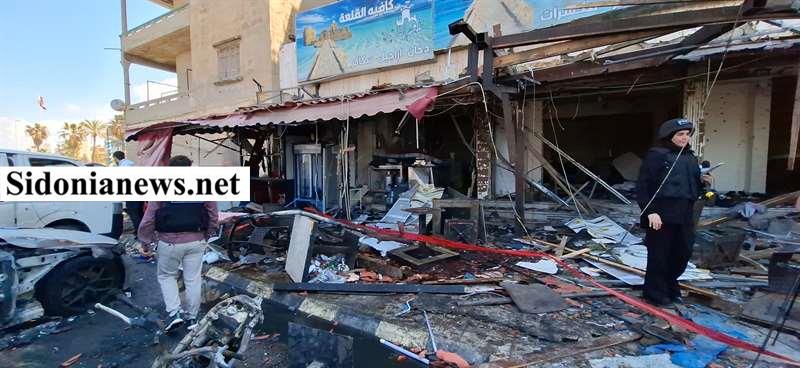 مشاهد بالفيديو والصور : مجزرة في صيدا 8 شهداء و22 جريحا في غارة إسرائيلية على كورنيش صيدا البحري أمام مقهى القلعة