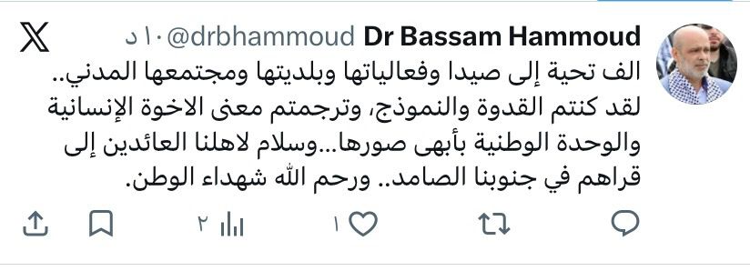 كتب رئيس المكتب السياسي للجماعة الاسلامية في لبنان الدكتور بسام حمود على منصة إكس ما يلي :