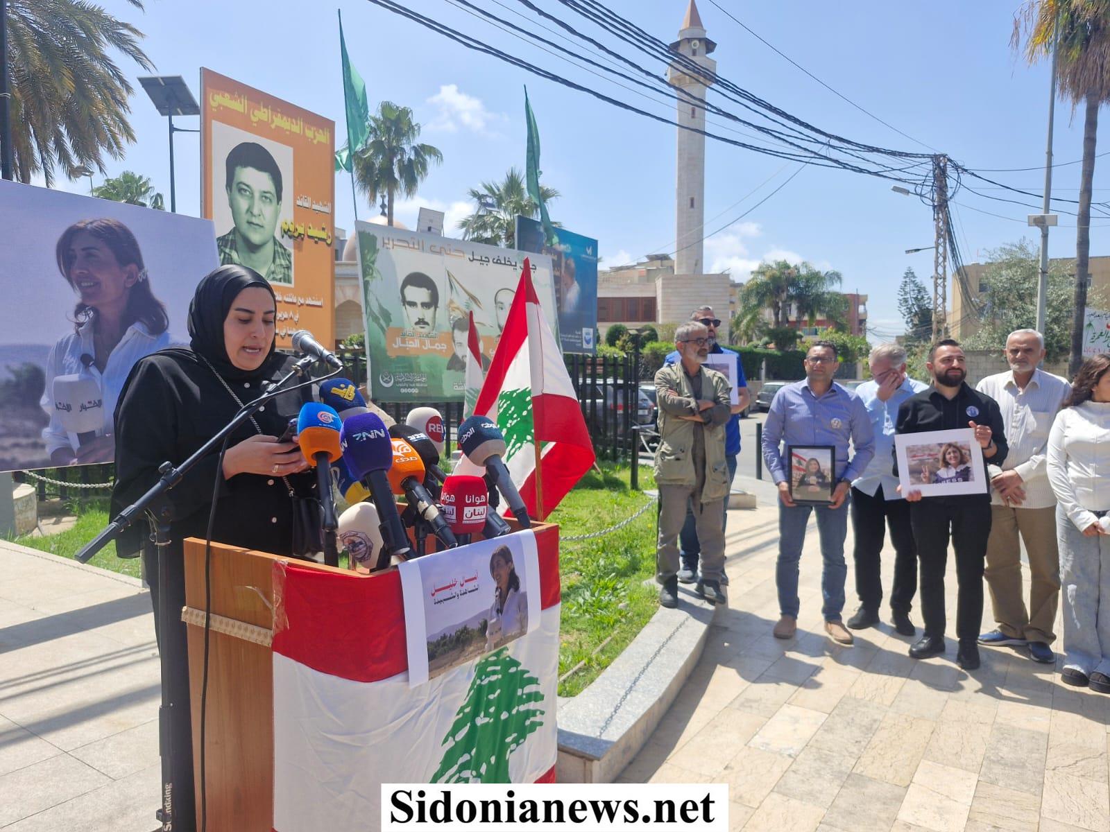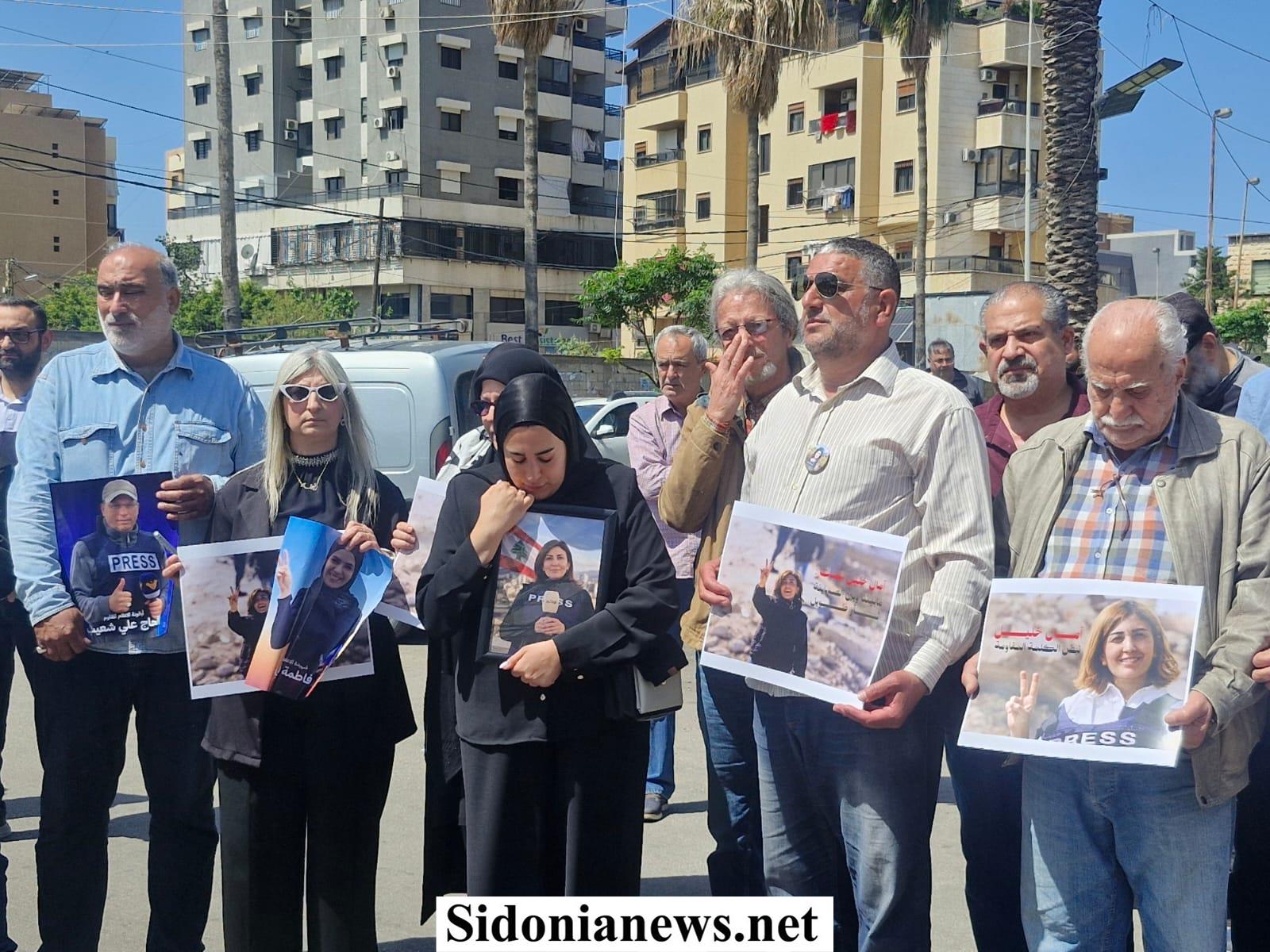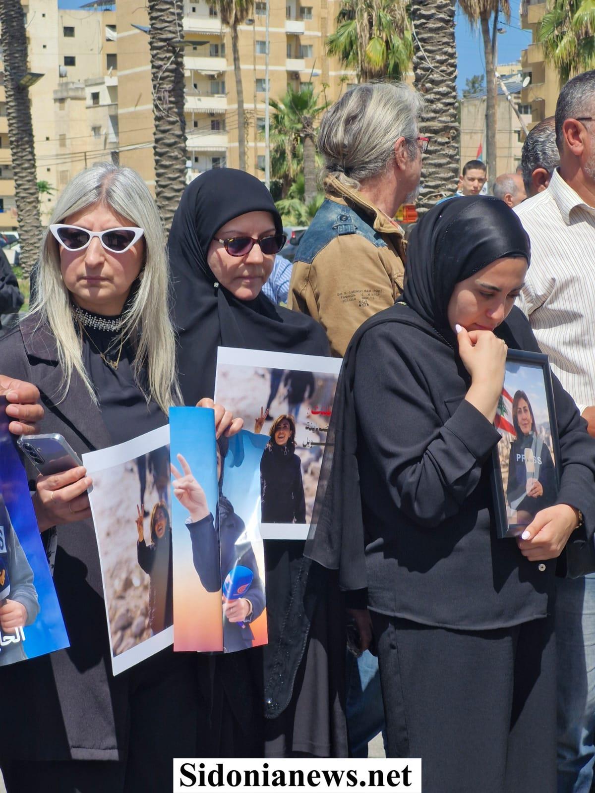 بالصور : إعلاميو صيدا والجسم الإعلامي وجهوا من ساحة الشهداء تحية إلى روح الإعلامية الشهيدة الزميلة آمال خليل منددين بجريمة إغتيالها المتعمد بغارة إسرائيلية