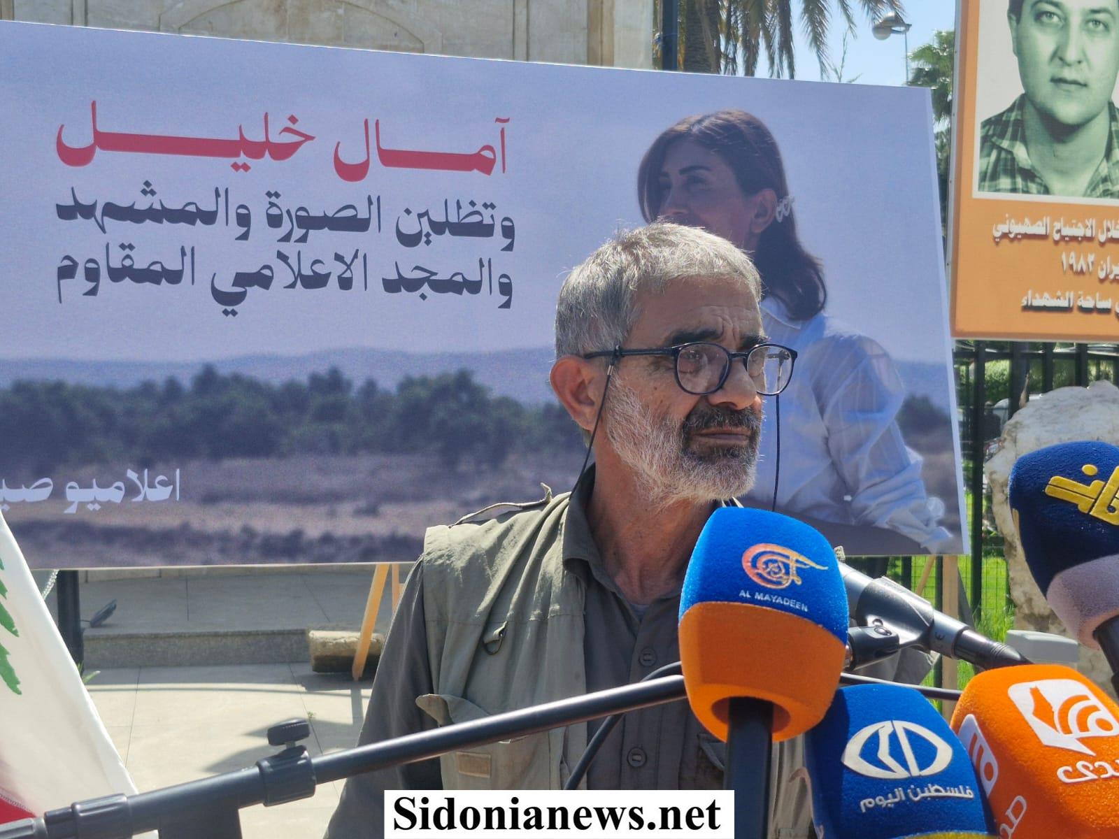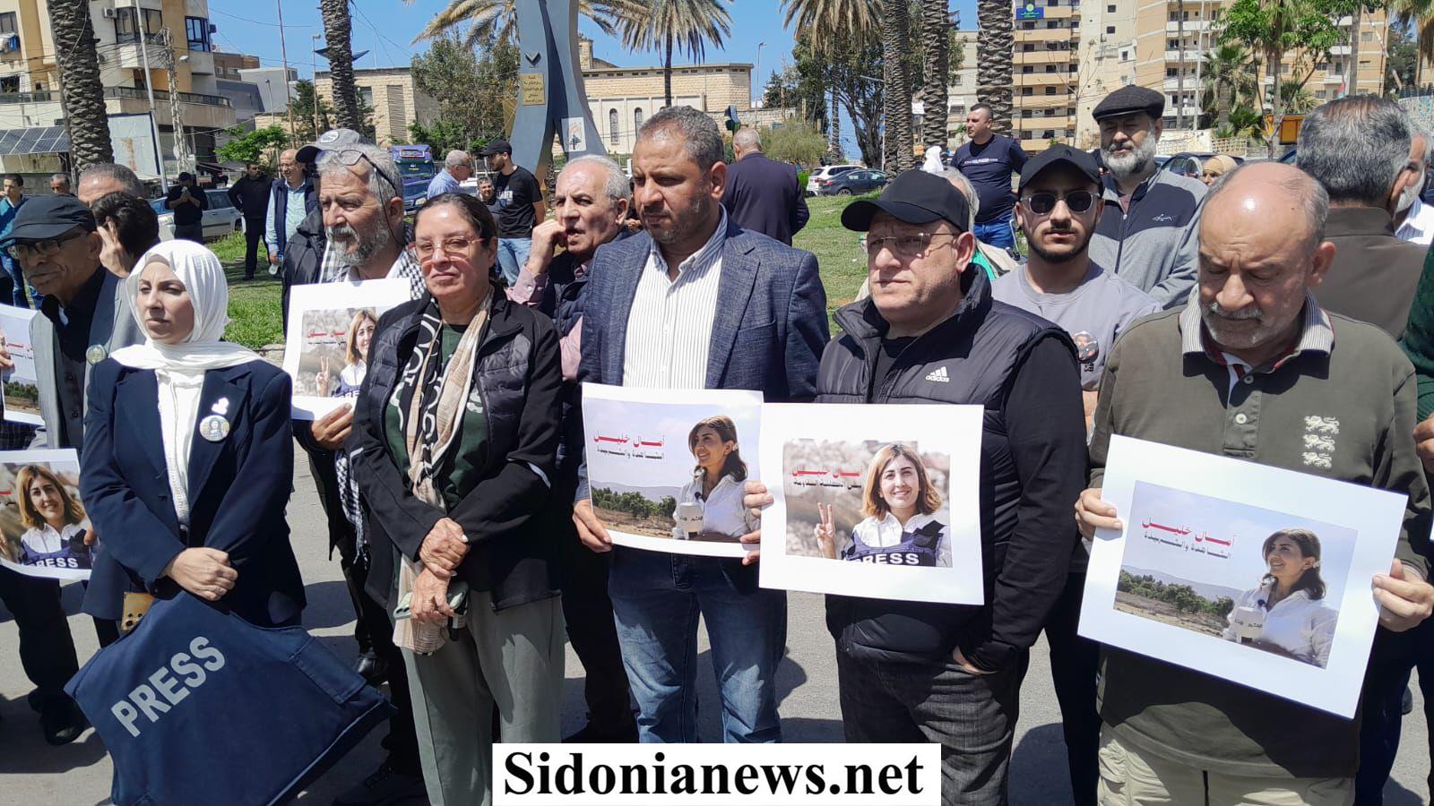 بدعوة من اعلاميي صيدا ومنطقتها ، نفذ القطاع الإعلامي ومعهم الجسم الإعلامي اللبناني الرسمي والنقابي ومختلف نقاباته وقطاعاته و اتحاداته إلى جانب الإعلام الإلكتروني والرقمي، وقفة تضامنية تحية لروح الزميلة الصحافية آمال خليل (مراسلة جريدة الأخبار) ، التي إغتالها الإحتلال الإسرائيلي بغارة جوية في بلدة الطيري خلال تأديتها لرسالتها الإعلامية ونقل الحقيقة وما يجري على أرض الجنوب من عدوان إسرائيلي وتدمير البلدات والقرى الجنوبية ومسح معالمها وتهجير سكانها .