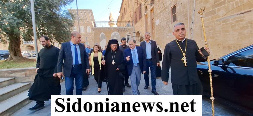 وكان في إستقبال البطريرك العبسي والحضور : المطارنة مارون العمار، وإلياس الحداد، وإلياس الكفوري، والرئيس العام للرهبانية المخلصية الأرشمندريت أنطوان ديب، والرئيسة العامة للراهبات المخلّصيات الأخت تريز روكز، وعدد من الكهنة والراهبات وعضو مجلس بلدية صيدا يوسف طعمة، ومحامي المطرانية ميشال طعمة، ورئيس كاريتاس صيدا والنبطية د. إيلي خطار، وجمع من المدعوين.
