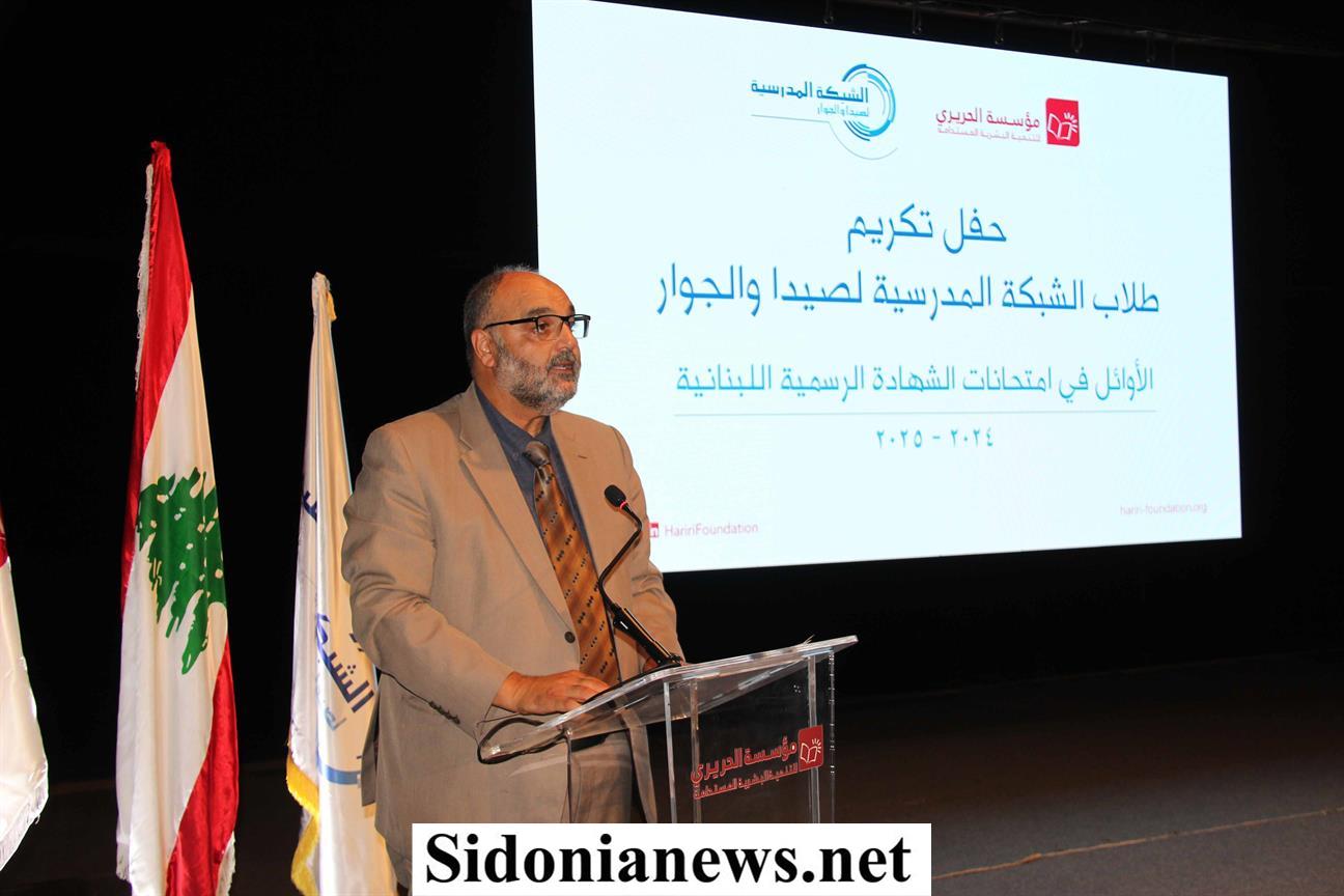 افتتح الحفل بالنشيد الوطني اللبناني، ثم بعرض فيديو حول الشبكة المدرسية، القى بعدها مدير ثانوية الحاج بهاء الدين الحريري الدكتور أسامة الأرناؤوط كلمة مديري مدارس الشبكة فبارك للطلاب المكرمين الذين قال انهم "حملوا في قلوبِهِم حلمًا كبيرًا، وفي عقولِهِم إصرارًا لا يلين، وتوّجوا أعوامَ الكفاحِ بوسامِ النّجاحِ والتّميّزِ، وأثبتوا أنَّ الإرادةَ تصنعُ المستحيلَ، وأنَّ مَنْ يزرعُ تعبًا يحصدُ مجدًا" ، معتبراً أنَّ "هذا الإنجازَ يزدادُ قيمةً إذا ما استحضرْنا الظّروفَ القاسيةَ الّتي رافقَتْ عامَنا الدراسيَّ، منَ الحرب، وما تبعَها مِنْ تحدّياتٍ وضغوطاتٍ نفسيّةٍ ولوجستيّةٍ". وتوجه بتحية الى مؤسِّسَةُ الشّبكةِ المدرسيّةِ لصيدا والجوار، السيدة بهية الحريري " الّتي سعَتْ جاهدةً إلى تحقيقِ العدالةِ التّربويّةِ بينَ طلابِ التّعليمِ الرّسميِّ والخاصِّ، وتعزيز التّشبيكِ والتّعاونِ بينَ المؤسّساتِ التّربويّةِ. فجعلَتِ الشّبكةَ منصةً لتبادلِ الخُبُراتِ، وجِسرَ عبورٍ للمعلّمينَ والطّلّاب نحوَ آفاقٍ أوسعَ منَ التّعلّمِ والإبداع". وقال: ونحنُ إذ نستعدُّ للإحتفالِ بمرورِ 24 عامًا على تأسيسِ الشّبكةِ المدرسيّةِ، نُؤكّدُ أنَّ رسالتَنا ستبقى كما بدأَتْ: تعليمٌ نوعيٌّ، شراكةٌ فاعلةٌ، وعدالةٌ تربويّةٌ مُستدامةٌ، وأنَّنا ماضونَ في مسيرةِ العطاءِ الّتي بدأَتْها رؤيةٌ، وتحوّلَتْ إلى إنجازاتٍ نفخرُ بِها جميعًا.ألا بوركَ سخاؤُكُم ودعمُكُم، بوركَ استمرارُكُم في مسيرةِ الشّهيد الرّئيس رفيق الحريري تحقيقًا للعدالةِ الاجتماعيّة، ودعمًا للمؤسّسات التّربويّة ولأجيال المستقبل. كما حيا المدراءِ والأساتذةِ على إخلاصِهِم وتفانيهِم، رغم كل الظروف الاقتصادية والمعيشية والأمنية وكل ما يحيط بنا، وأولياءِ الأمورِ على دعمِهِم ومساندتِهِم، والطلاب المتفوقين مخاطباً إياهم: أنتم اليوم فخرُ بلدكم، وغدًا أنتم صناعُ نهضتِه. ووجه الأرناؤوط تحية خاصة الى أطفال وطلاب وأهل غزة الذين يزدادون كل يوم إصرارا وعزيمة وتحدياً وثباتاً ، مؤكداً أنه مع هذا اليقين وهذه العزيمة التي لا تلين ، ستنتصر غزة وستحرر فلسطين.