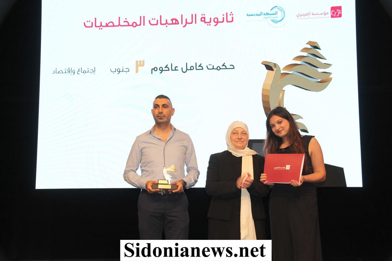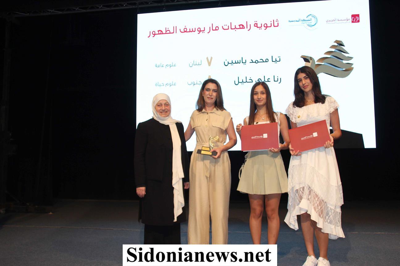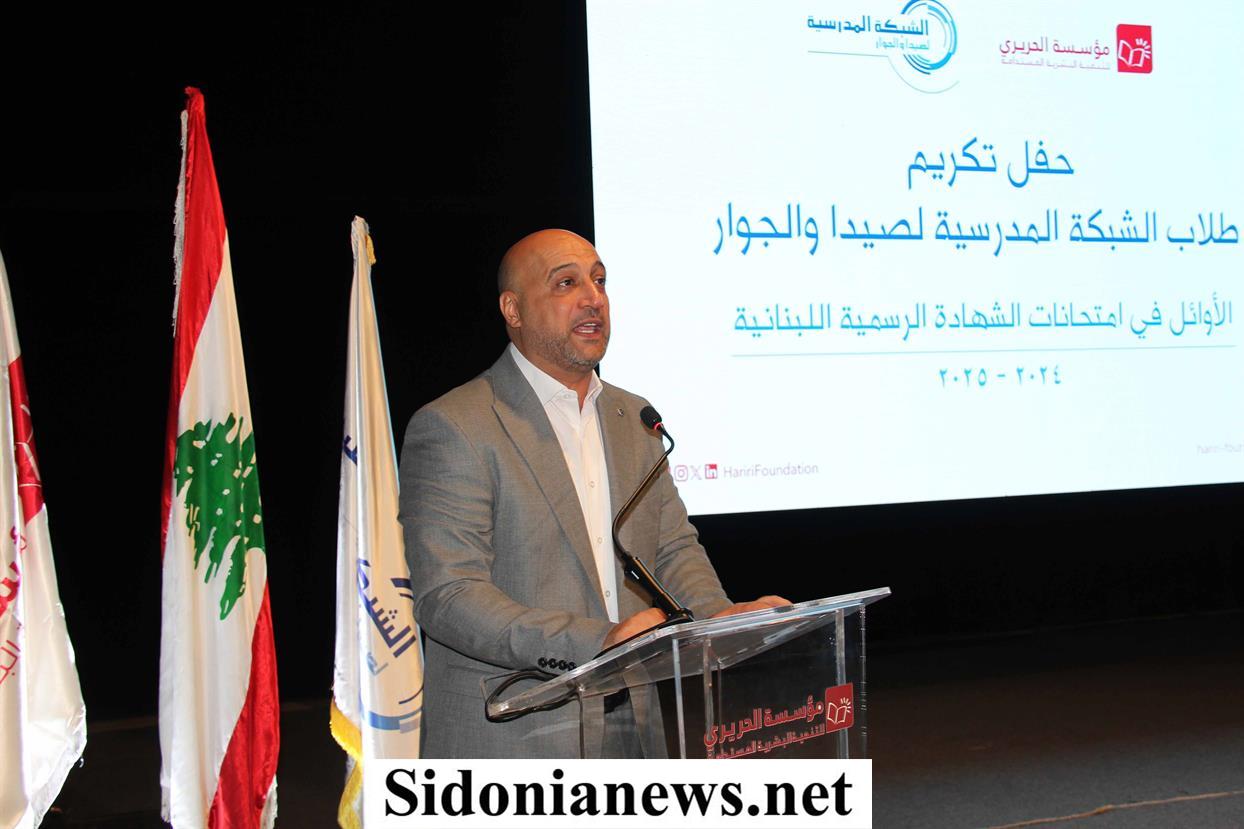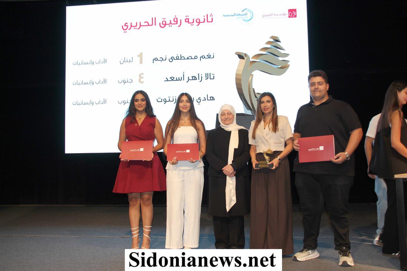 بمبادرة من رئيستها السيدة بهية الحريري كرمت مؤسسة الحريري للتنمية البشرية المستدامة الطلاب الأوائل في امتحانات الشهادة الرسمية اللبنانية ( الثانوية والمهنية ) على صعيد مدارس الشبكة المدرسية لصيدا والجوار ، باحتفال كبير اقيم في قاعة مسرح ثانوية رفيق الحريري في صيدا.