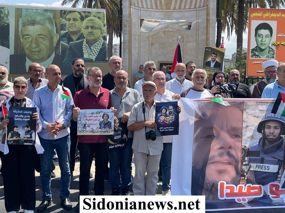 بالصور: وقفة غضب من إعلاميي وإعلاميات صيدا في ساحة الشهداء إستنكارا لجرائم الإحتلال الإسرائيلي باستهداف وقتل الصحافيين في غزة فلسطين وفي لبنان