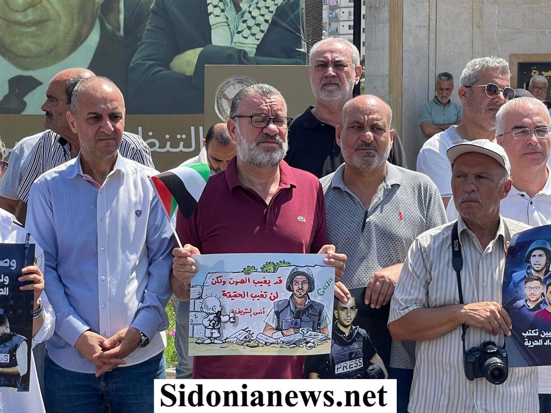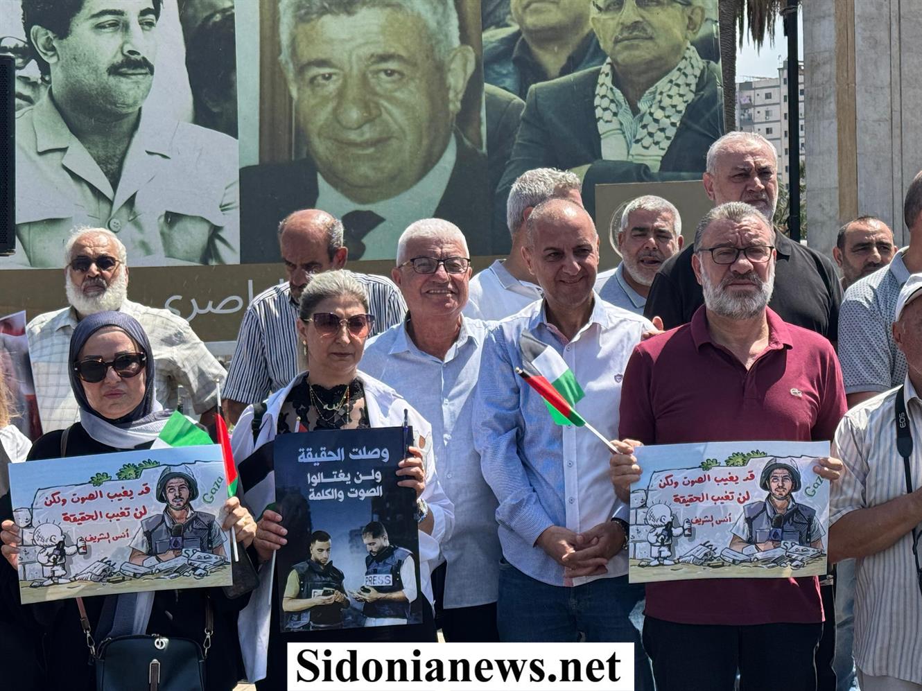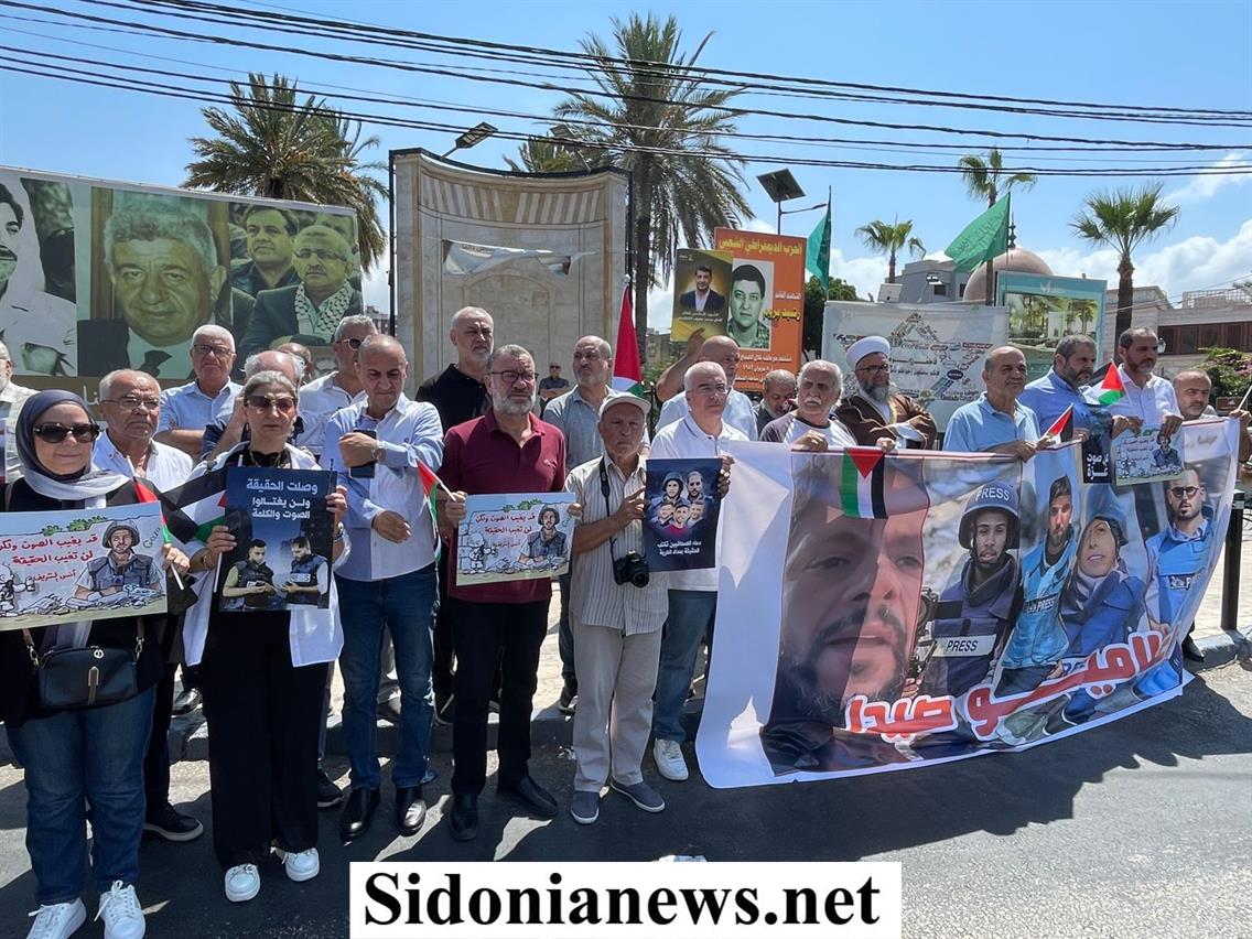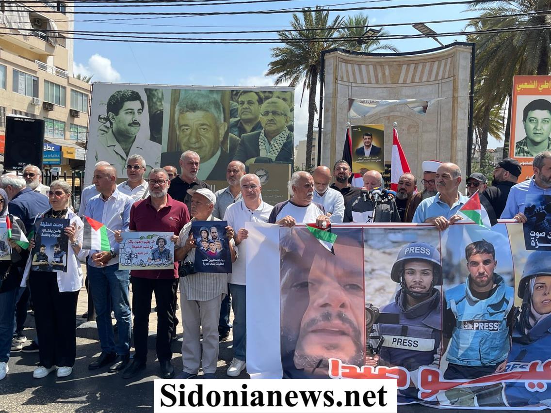 وقال: "وقفتنا في صيدا هي شكل من اشكال التعبير لاستنهاض الهمم والارادات الاعلامية، اما ما يتعرض له الاعلام في فلسطين ولبنان واستهداف الصحافيين فما هو الا في اطار حرب الابادة التي تتعرض لها غزة، وفي اطار السياسة الصهيونية المدعومة اميركيا وبصمت عربي ودولي لطمس القضية الفلسطينية".