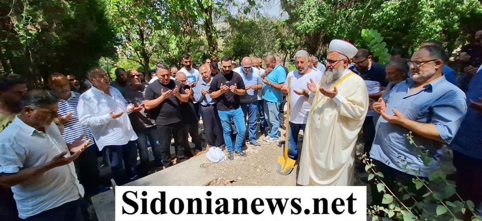 وأم الصلاة على الجثمان في مسجد الغفران في صيدا الشيخ حسام العيلاني ، حيث حمل النعش على الأكف ووري في الثرى في مقبرة صيدا الجديدة.