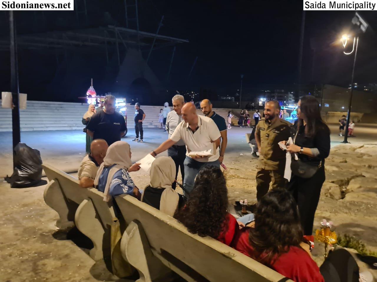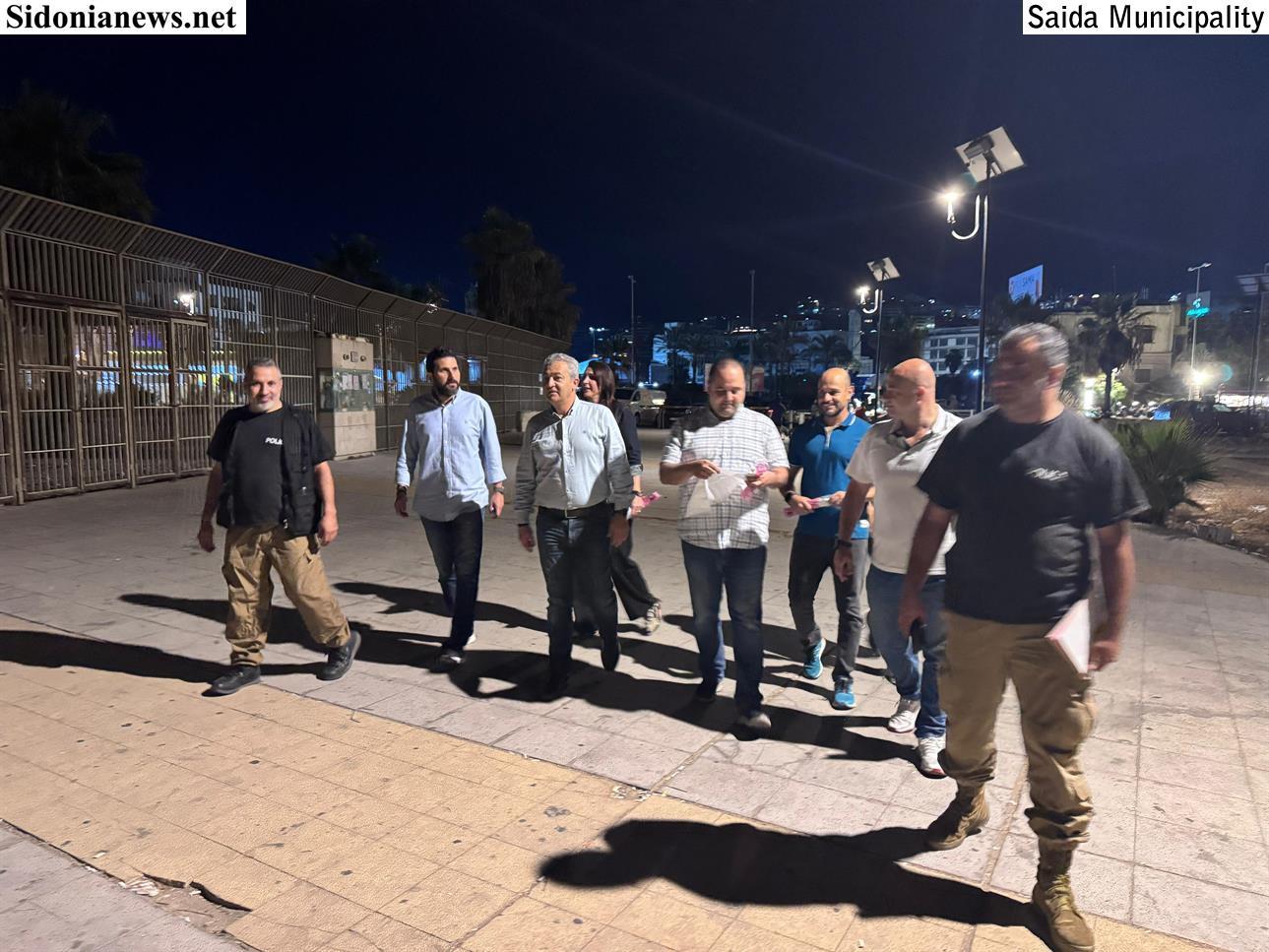 في إطار الجهود المستمرة التي تبذلها بلدية صيدا لتعزيز التوعية المجتمعية والمحافظة على نظافة شوارع وأحياء المدينة، قام رئيس البلدية المهندس مصطفى حجازي ونائبه الدكتور أحمد عكرة، برفقة أعضاء المجلس البلدي: السيدة إنجي عطروني والسيد أحمد شعيب والسيد يوسف طعمة والدكتور تيسير الزعتري والسيد وائل قصب، وبمؤازرة شرطة البلدية، بجولة مسائية شملت محيط ملعب صيدا البلدي والكورنيش البحري.