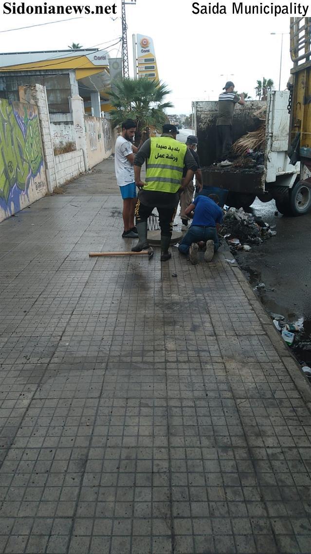 أعلنت بلدية صيدا أن فرق الطوارىء البلدية عملت وبشكل سريع على إزالة النفايات التي جرفتها مياه الأمطار إلى أقنية مياه الأمطار والمجاري ، كما وكثفت أعمال تعزيل الأقنية في مختلف الشوارع والأحياء منعا لإنسدادها مع هطول الأمطار.