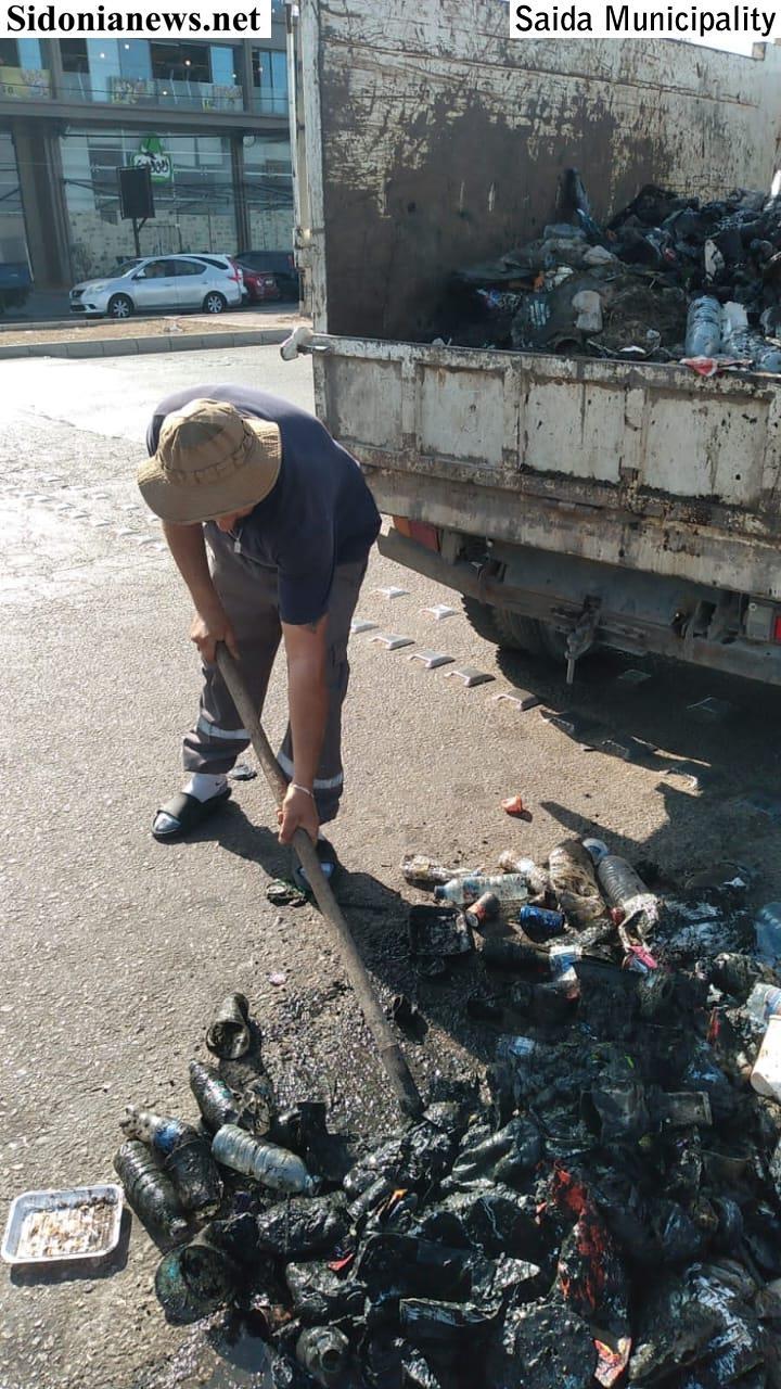 بالصور: فرق طوارىء بلدية صيدا تسارع لإزالة النفايات بعدما جرفتها الأمطار إلى أقنية المجاري وتجدد الدعوة لعدم رمي النفايات خارج المستوعبات