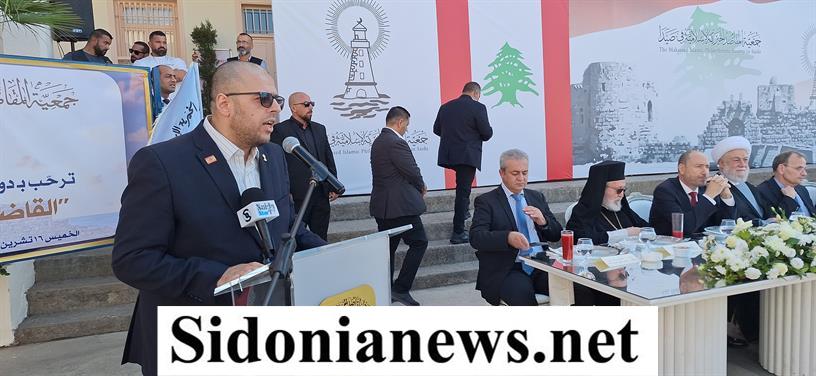 بعد النشيدين اللبناني والمقاصدي، وتلاوة من القرآن الكريم، تحدث رئيس جمعية المقاصد الخيرية الإسلامية في صيدا محمد فايز البزري، فقال: "يسعدني باسمي وزملائي أعضاء المجلس الإداري لجمعية المقاصد الخيرية الإسلامية في صيدا -وباسم كل المقاصديين- أن أرحب بكم جميعًا، في رحاب أم مدارس الجمعية، في هذا الحفل التكريمي الخاص، على شرف ضيف صيدا العزيز دولة الرئيس القاضي الدكتور نواف سلام".