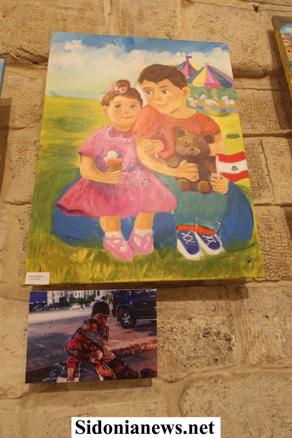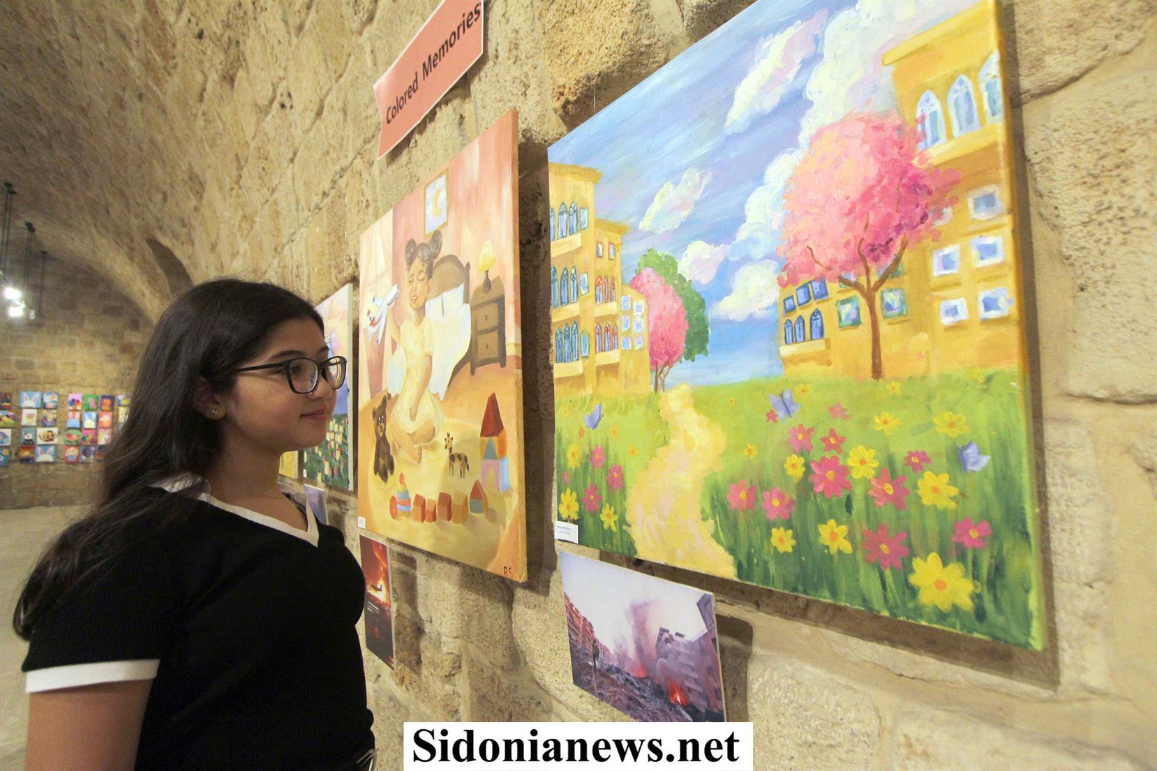 ويميّز المعرض الذي يقام في القاعة الرئيسية الداخلية للخان، جناح خاص للوحات فنية أعاد من خلالها الطلاب وعلى طريقتهم رسم صور ومشاهد من الحرب الإسرائيلية الأخيرة على لبنان وحولوها من مشاهد دمار تضج بالمآسي والحزن الى صور للأمكنة المستهدفة نفسها كما يحلم بها الطلاب مفعمة بالحياة والأمل بأن الغد سيكون أجمل ، وتأكيداً على حق أطفال لبنان في الفرح والعيش بأمان .