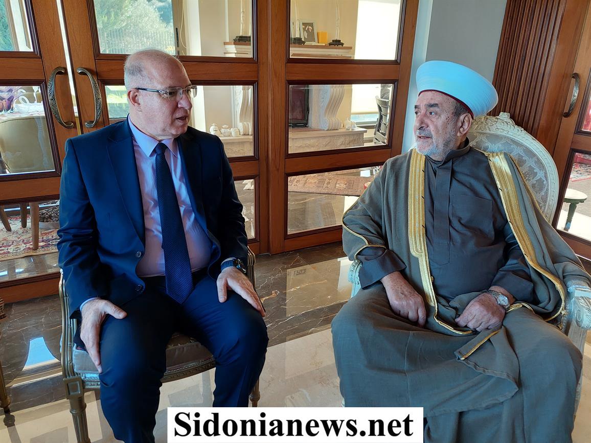 انتقل بعدها وزير العمل والوفدين المرافقين للقاء مفتي صيدا الجعفري الشيخ محمد عسيران في دار الإفتاء في البوابة الفوقا في المدينة ، واكد خلاله الوزير حيدر " أن التقارب ووحدة اللبنايين هى الضمانة لصلابة لبنان بمواجهة العدو الاسرائيلي ومنعه من تحقيق أهدافه . "