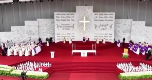 البطريرك العبسي مرحبا بالبابا في قداس الواجهة البحرية