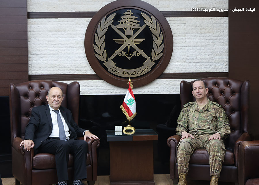 جريدة صيدونيانيوز.نت / اخبار لبنان / قائد الجيش اللبناني عرض ولودريان آخر التطورات في لبنان والمنطقة وسبل دعم الجيش