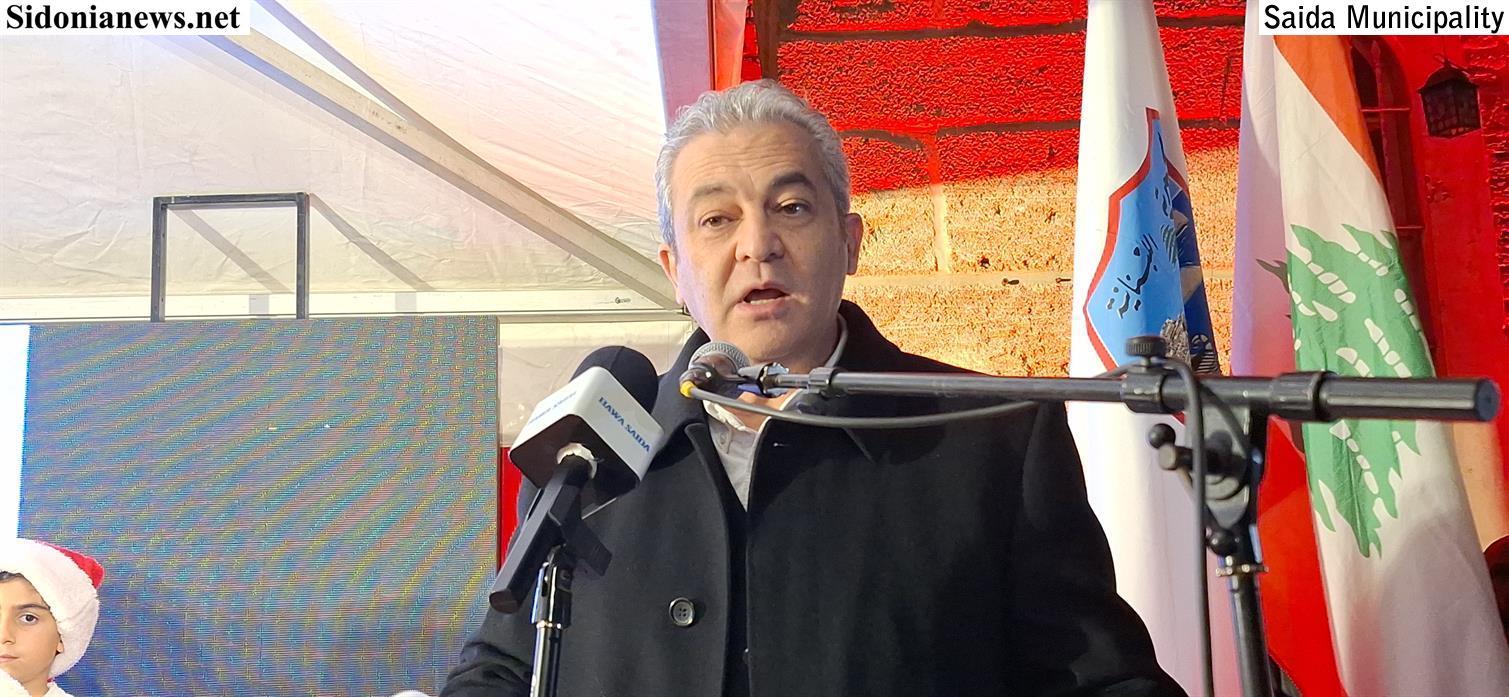يسعدني ويشرفني باسم بلدية صيدا ومجلسها البلدي أن أرحب بكم جميعا في هذا اللقاء الميلادي الجميل، في افتتاح قرية صيدا الميلادية وإضاءة شجرة الميلاد في هذا المكان الذي يجمع بين التاريخ والإيمان والحياة اليومية لأهل المدينة.