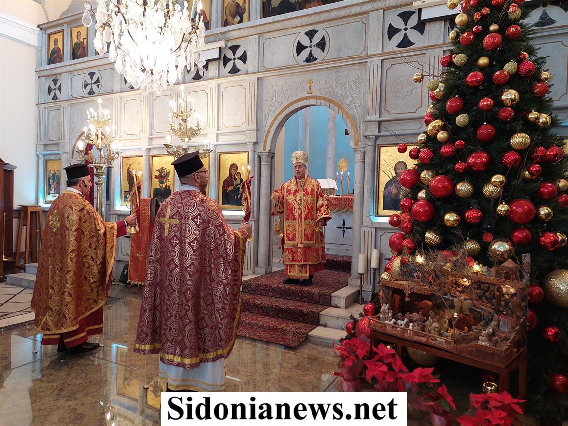 وترأس راعي ابرشية صيدا وصور ومرجعيون المطران الياس الكفوري قداسا في كنيسة مار نيقولاوس في صيدا القديمة عاونه فيه الأب جوزيف خوري وعدد من الاباء وأكد في عظته على أن ميلاد السيد المسيح جاء ليحمل رسالة المحبة والسلام لبني البشر جمعاء .----