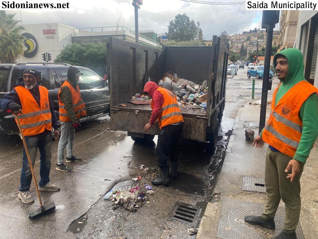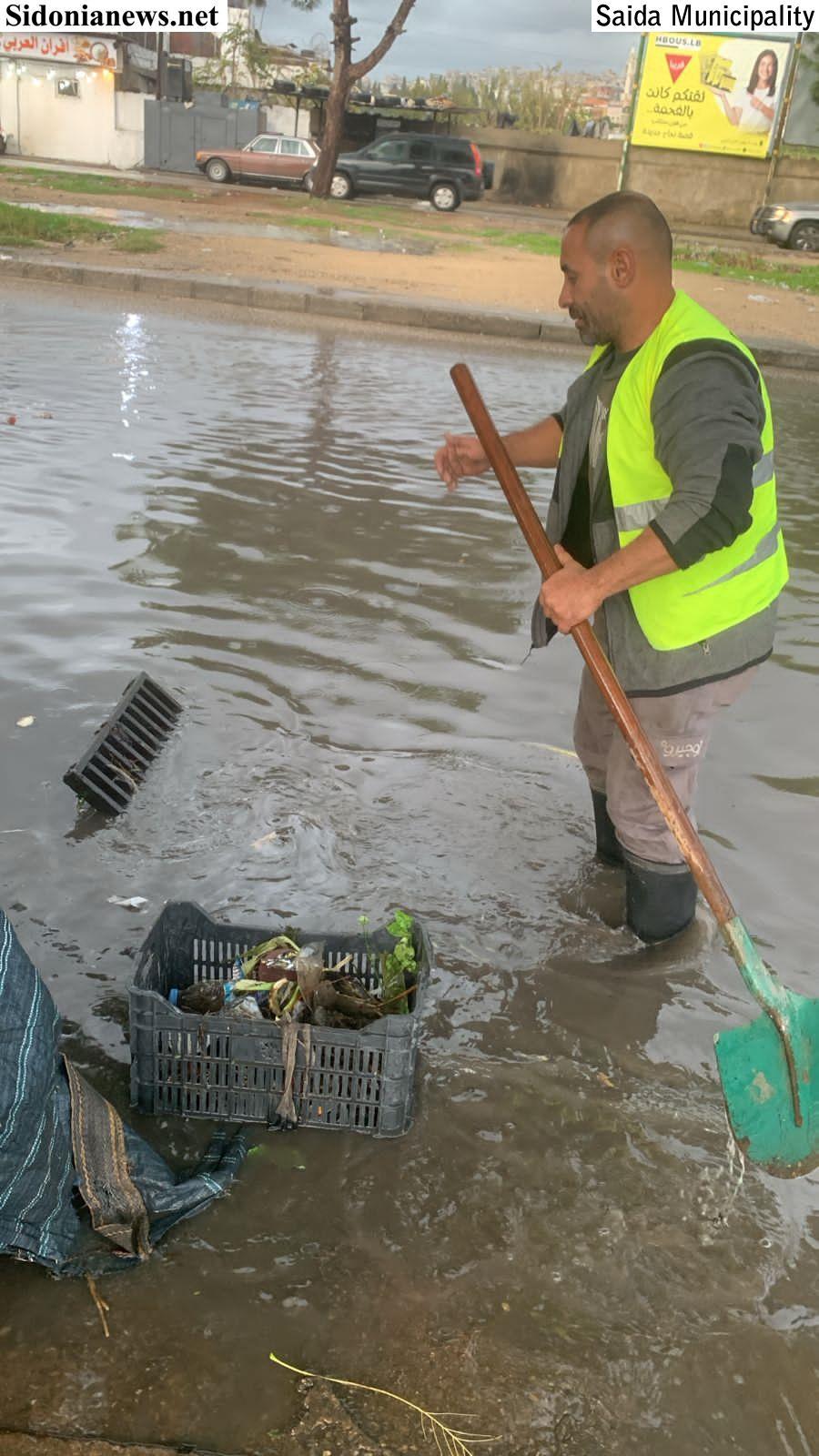 إستنفرت فرق طوارىء وورش بلدية صيدا لمواجهة تداعيات الأمطار الغزيرة جراء المنخفض الجوي، وقامت بالكشف على أقنية تصريف المياه والمجاري في مختلف شوارع المدينة ، ولا سيما تلك التي سجلت فيها تجمعات لمياه الأمطار ، وقامت بتعزيلها وفتح الأقنية التي إنسدت أغطيتها جراء الأتربة وأغصان الأشجار وأكياس النايلون ومخلفات جرفتها مياه الأمطار.