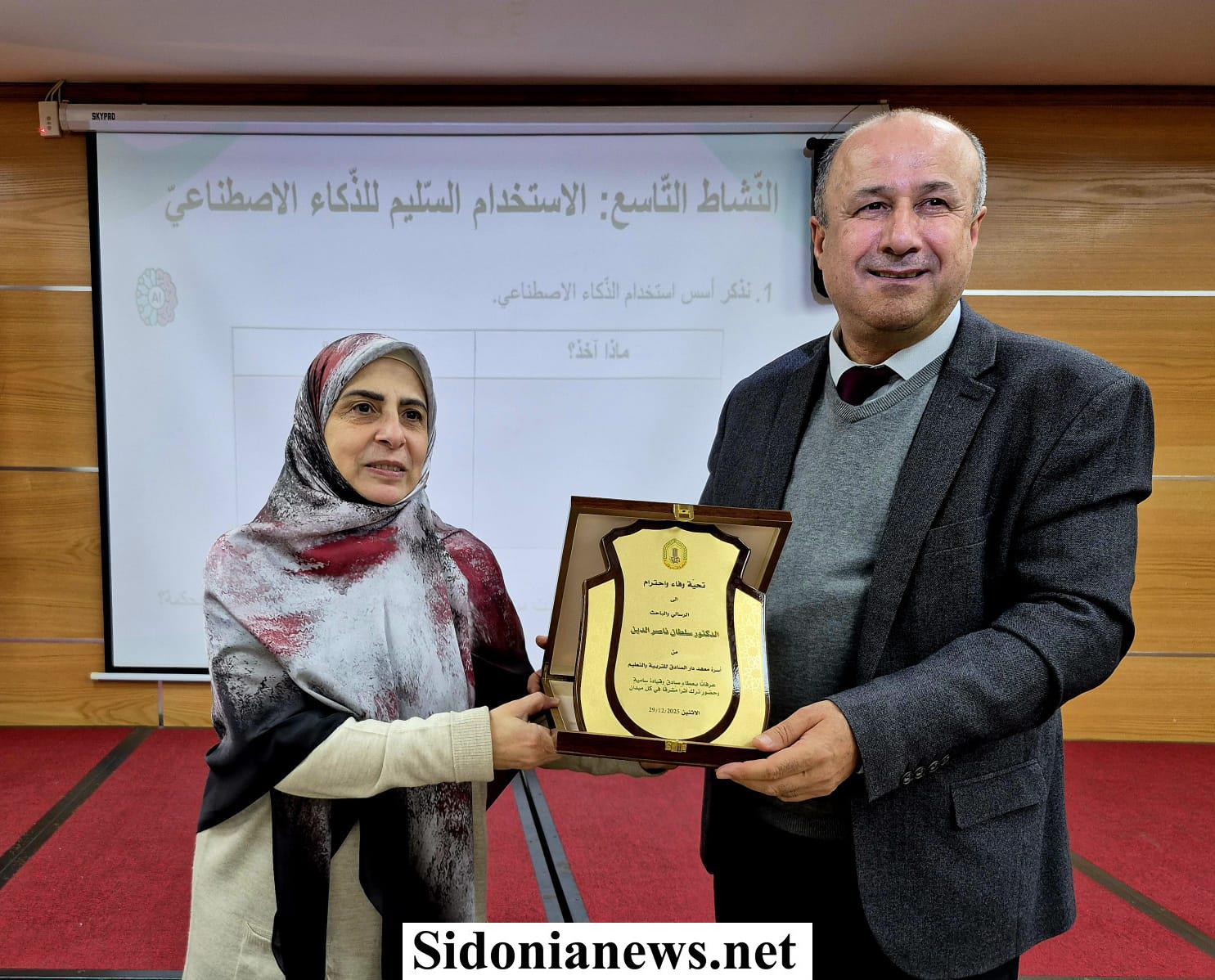 وتحدث المدرّب الدكتور سلطان ناصر الدّين فاعتبر أن " التّدريب في التّربية تحديث مفيد، لأنّه يواكب تطوّر المعرفة وأساليب التّعليم، ويمنح المعلّم أدوات جديدة تجعله أكثر قدرة على فهم المتعلّم والتّفاعل مع حاجاته المتغيّرة ". وقال: " التّدرّب حاجة لكلّ إنسان. التّدرّب يزيد المعارف وينقّيها، وينمّي المهارات، والمهارات الفاعلة إنتاج. إنّ الاعتماد الأعمى على الذّكاء الاصطناعيّ يضعف التّفكير، ويفقد عمق الفهم، ويجعل العقول سطحيّة. عندما يُستثمر الذّكاء الاصطناعيّ كوساطة مساعدة لا بديلة يعزّز التّفكير، ويوسّع الأفق، ويجعل العقول بنّاءة." وختم ناصر الدين منوّهًا بالجهود التربوية المستمرة لدار الصّادق ، وسعيها الدّؤوب لتعزيز جودة التّعليم وتطوير الإنسان.