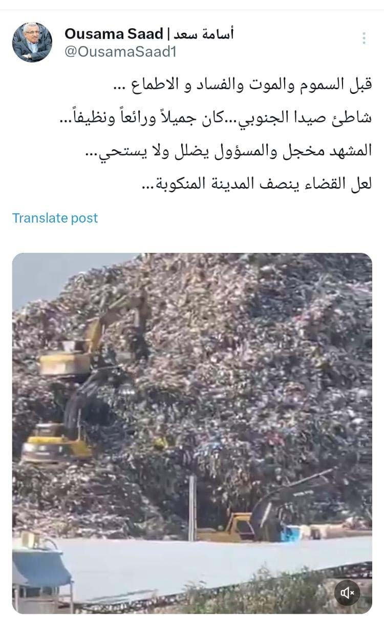 كتب الأمين العام للتنظيم الشعبي الناصري النائب الدكتور أسامة سعد على منصة "أكس": "قبل السموم والموت والفساد والاطماع. شاطئ صيدا الجنوبي كان جميلاً ورائعاً ونظيفاً. المشهد مخجل والمسؤول يضلل ولا يستحي. عل القضاء ينصف المدينة المنكوبة".