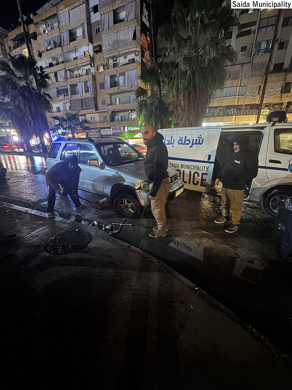 بالصور: بلدية صيدا : دوريات شرطة البلدية وفرق الطوارىء مستنفرة لخدمة المواطنين في مواجهة تداعيات العاصفة