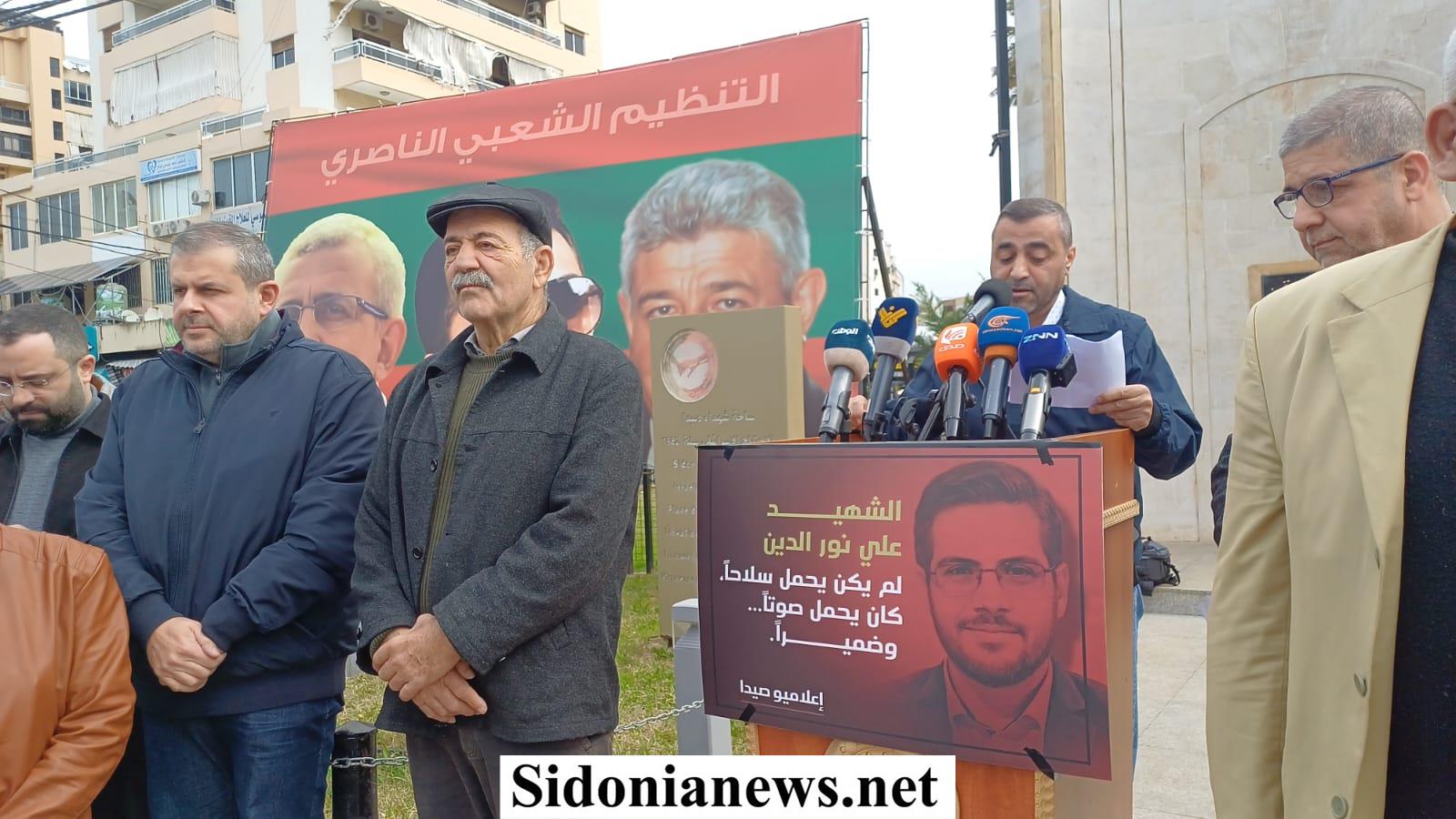 بالصور: وقفة تضامنية في ساحة شهداء صيدا تنديدًا بإستمرار باستهداف العدو الإسرائيلي للصحافيين وإغتيال الشهيد علي نور الدين وردود فعل متضامنة من فاعليات وشخصيات