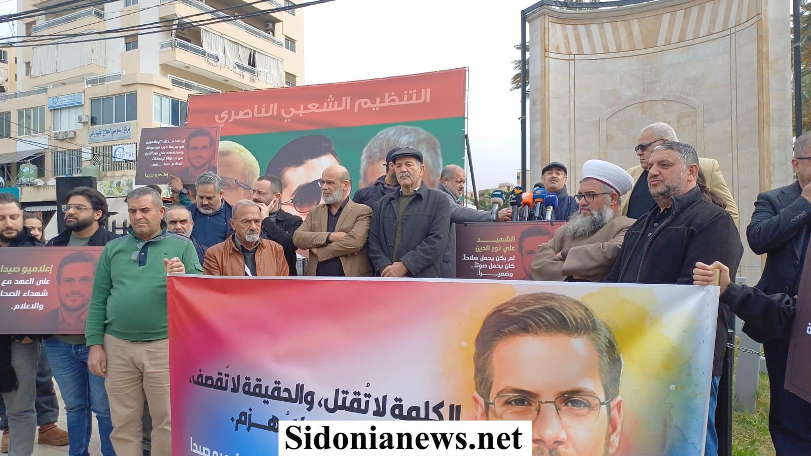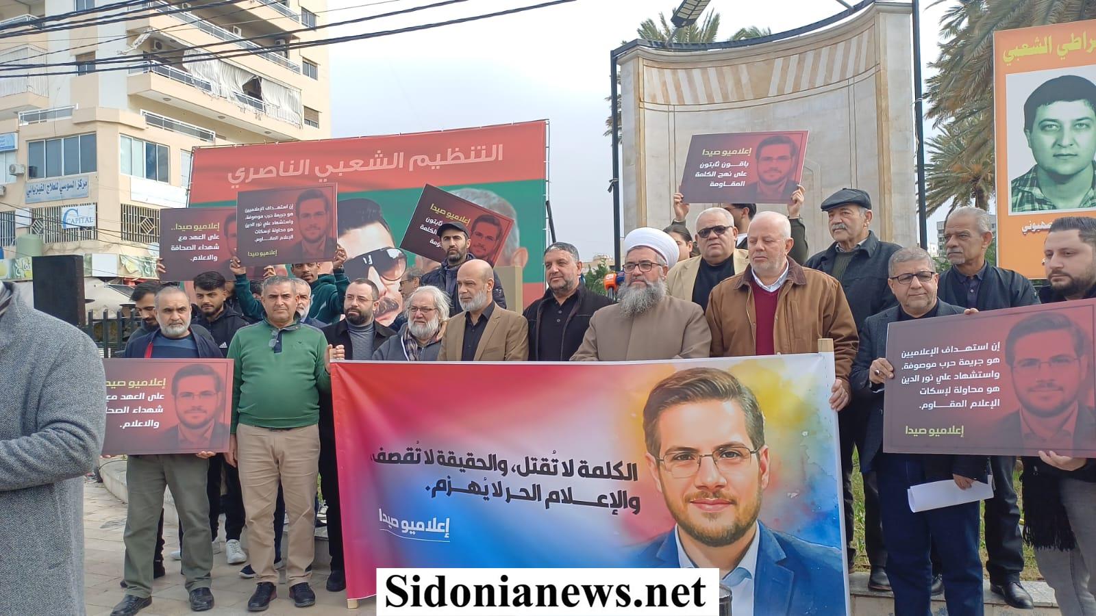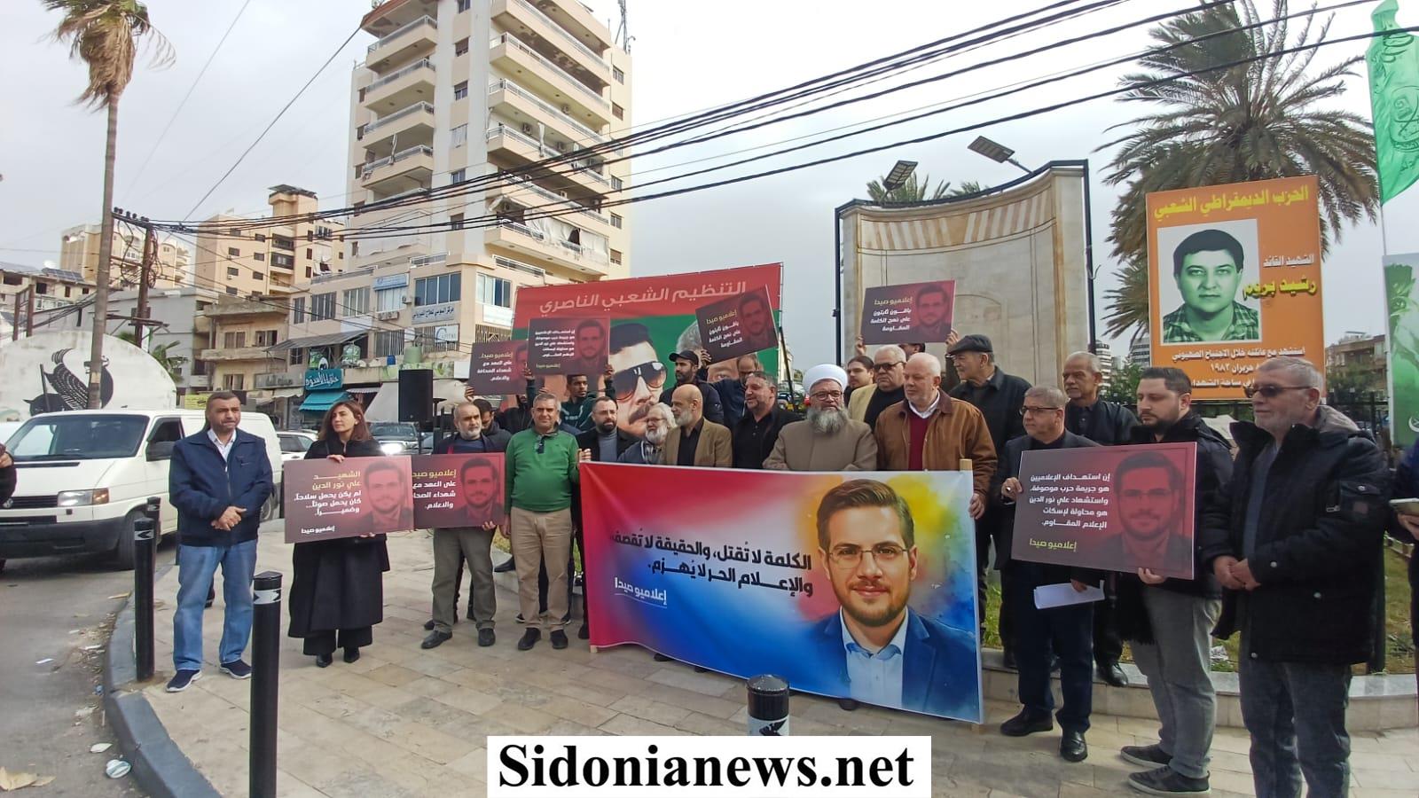 نفذت قبل ظهر اليوم وقفة تضامنية في ساحة شهداء صيدا بإسم الإعلاميين في صيدا ومنطقتها وذلك للتعبير عن تنديدهم لمواصلة العدو الإسرائيلي إستهداف الصحافيين والعاملين في الجسم الإعلامي وآخرهم الإعلامي الشهيد علي نور الدين.