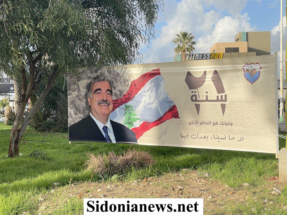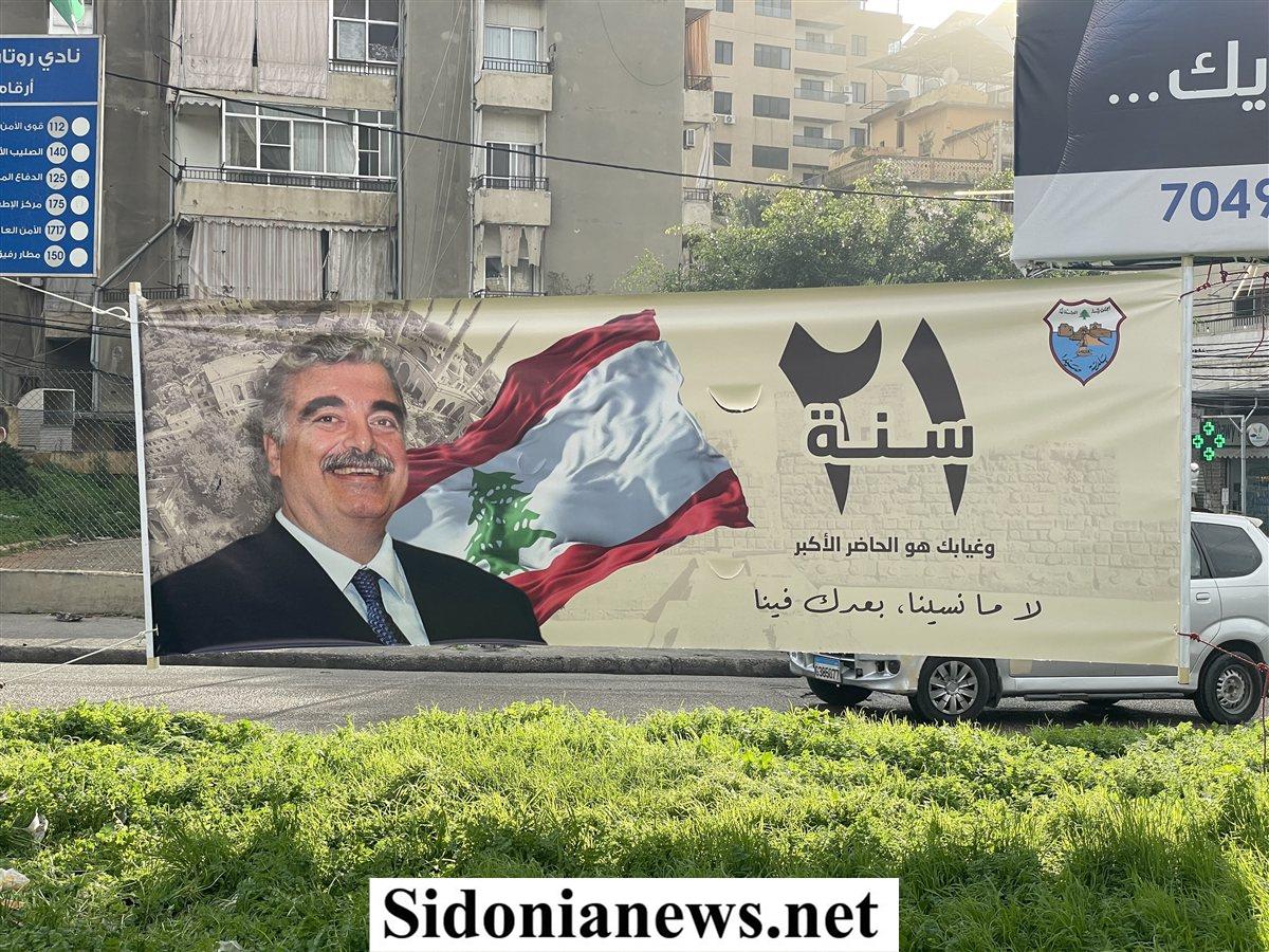 أعلنت بلدية صيدا أنه "ولمناسبة قرب حلول الذكرى الحادية والعشرين لإستشهاده، توجّه بلدية صيدا تحية لروح الرئيس الشهيد رفيق الحريري حيث تم رفع لافتات تحمل صورته الى جانب العلم اللبناني وعبارة "21 سنة... لا ما نسينا .. بعدك فينا "، توزعت بين مدخل مبنى القصر البلدي، ساحة النجمة، تقاطع ايليا، مستديرة مرجان، ومستديرة جامع الحريري.