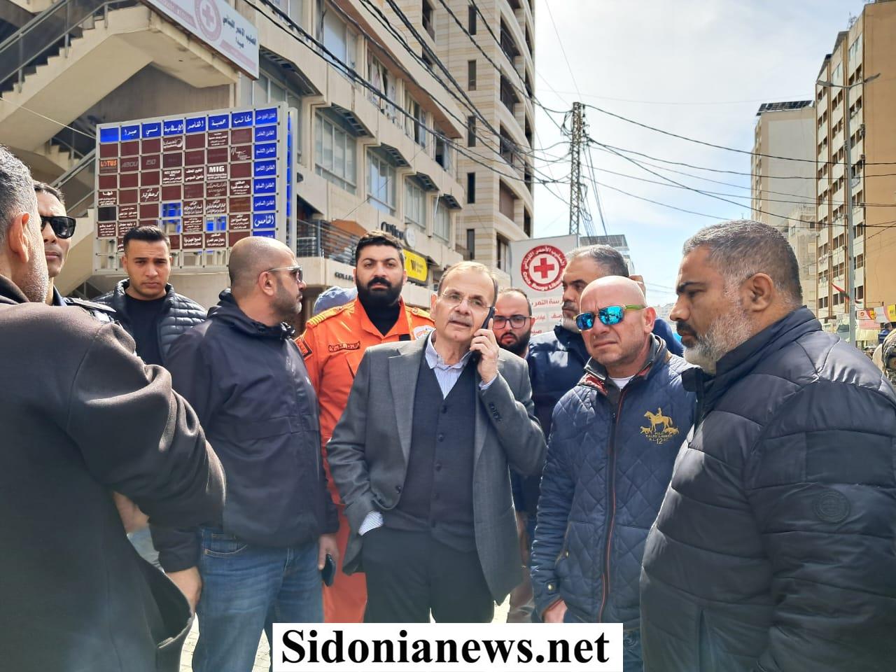 جريدة صيدونيانيوز.نت / بالصور : النائب عبد الرحمن البزري تفقّد موقع الغارة على عمارة المقاصد في صيدا والأضررا الناجمة عنها