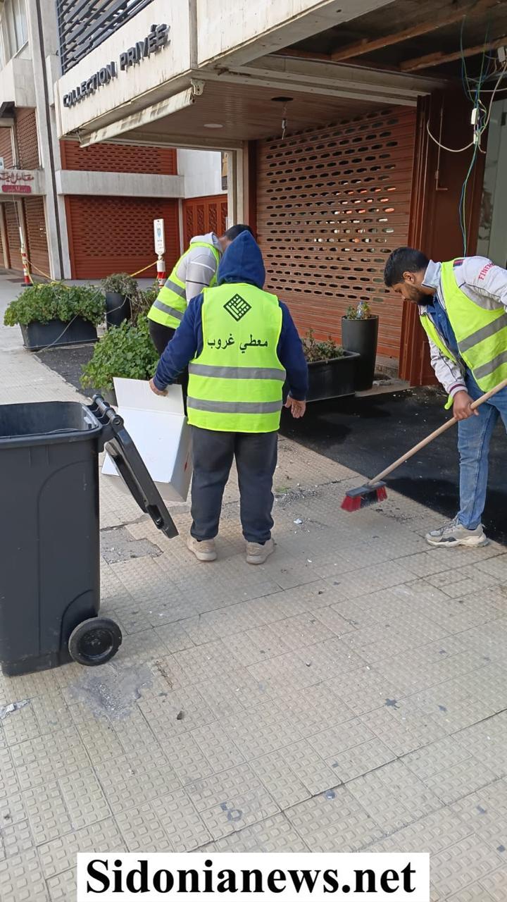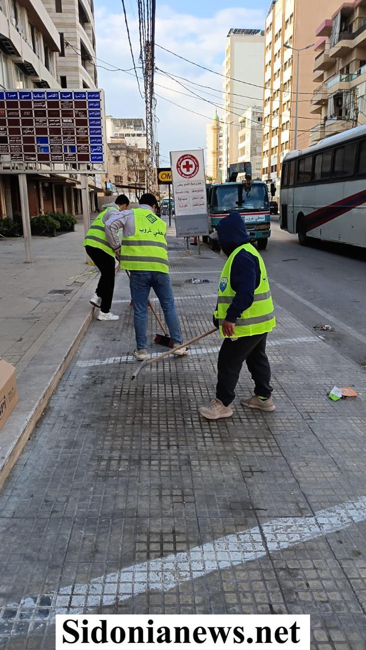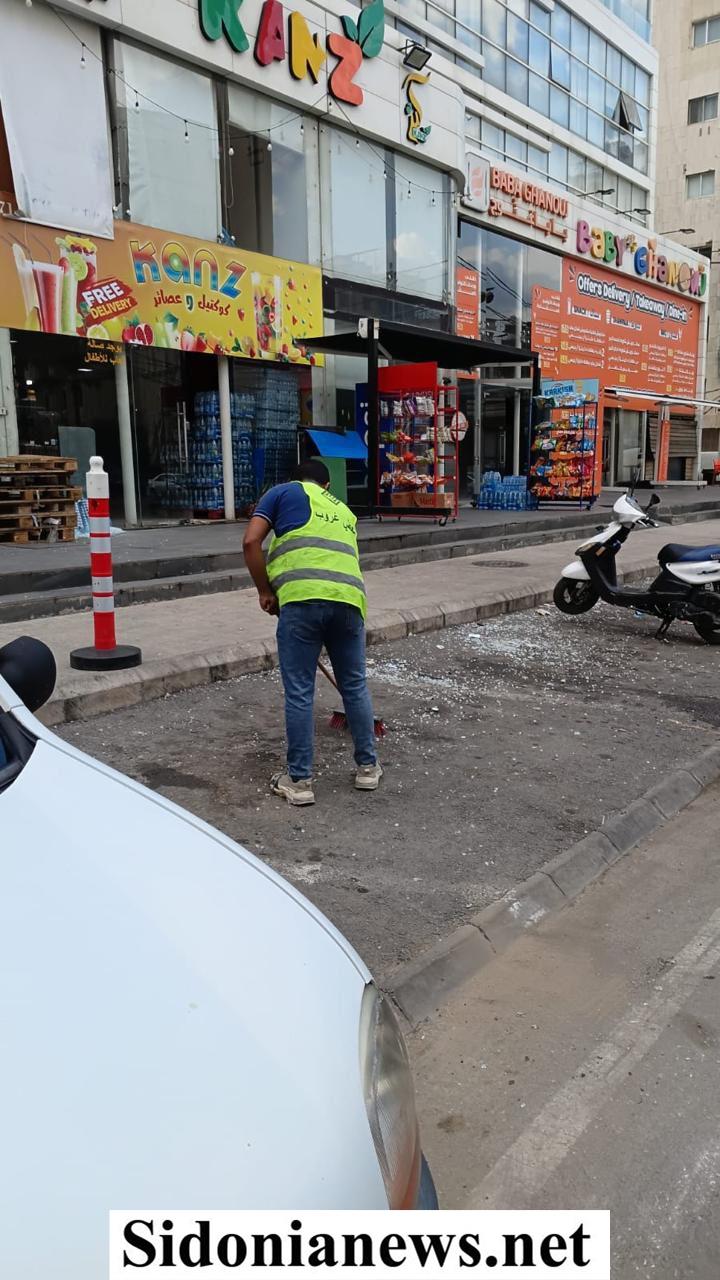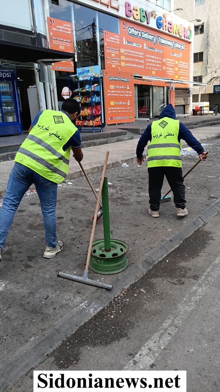 أخبار مدينة صيدا / فرق معطي غروب تقوم بكنس الطرقات في صيدا بعد الاعتداء الاسرائيلي على عمارة المقاصد