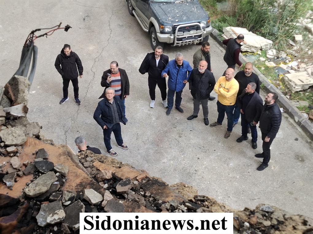 أخبار مدينة صيدا / بالصور : رئيسا بلديتي صيدا وحارة صيدا حجازي والزين يتفقدان موقع الغارة في حارة صيدا التي أدت لاستشهاد عائلة الترياقي