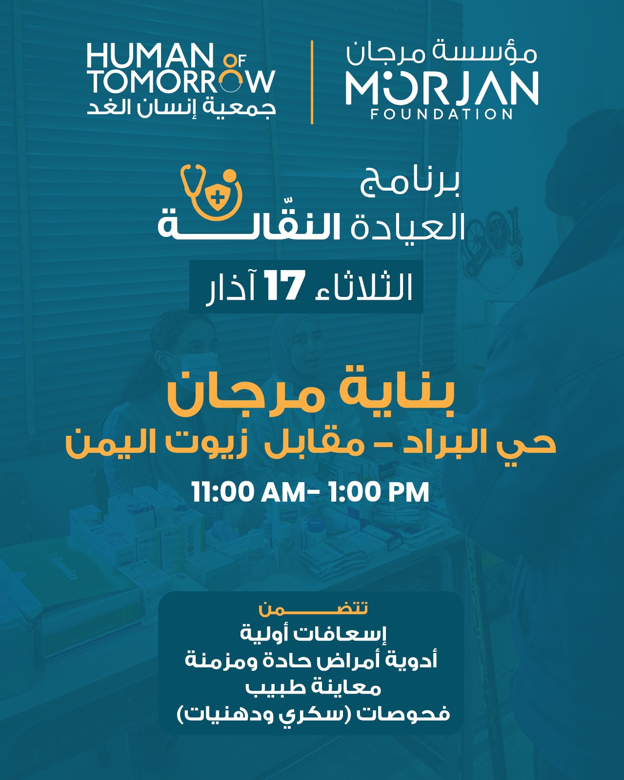 برنامج العيادة المتنقلة في صيدا لمؤسسة مرجان وجمعية إنسان الغد لنهار الثلاثاء 17-3-2026 (راجع الصورة أعلاه) :